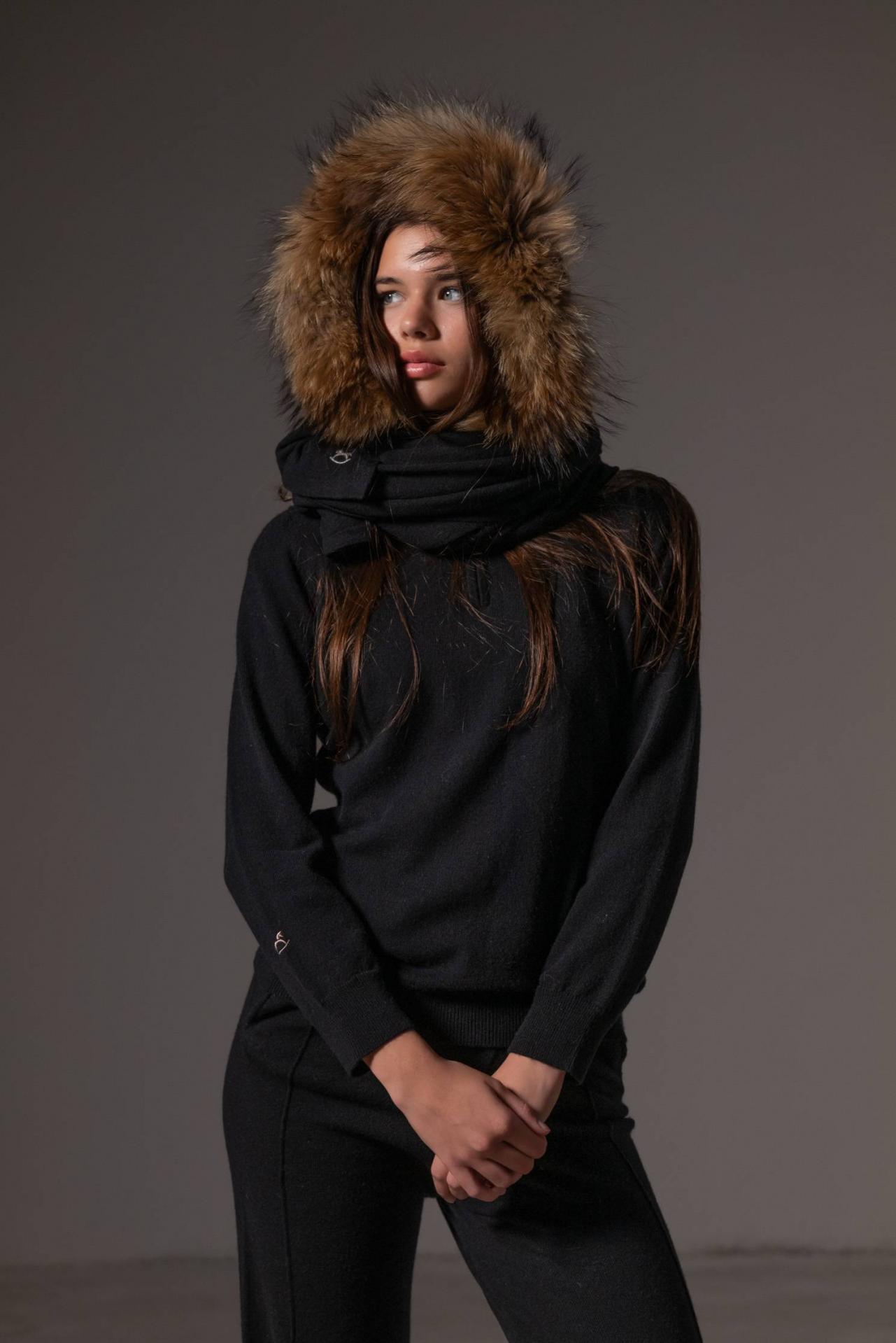 Maxi bufanda con capucha rematada en piel natural, elaborada en suave cashmere con detalle minimalista. Su capucha aporta un toque extra a cualquier look. Material: 30% cashmere y 70% lana 100% merino. Color: Mocca snake. Cuidado de las prendas: Lavado a mano en frío o en programa para prendas delicadas. Planchado del revés y a baja temperatura