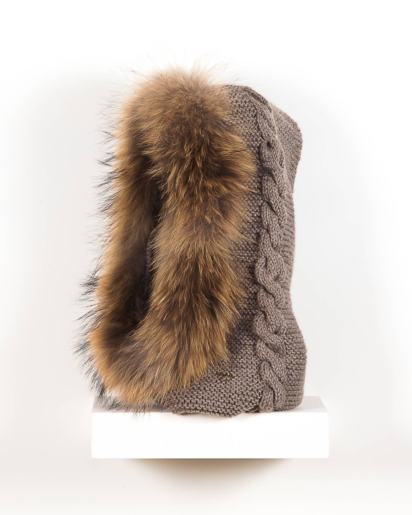 Capucha punto trenza visón pelo natural al tono del punto