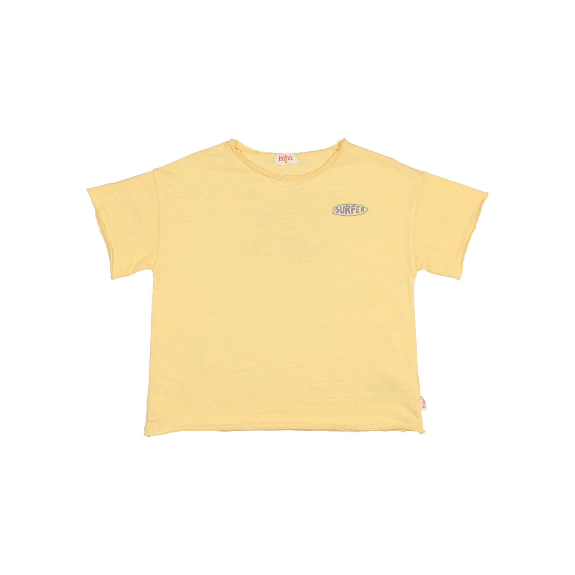 Camiseta de algodón orgánico de manga corta. Estampado surfer en el pecho y en la espalda. Cuello redondo. 100% Algodón Orgánico. Fabricado en Portugal.