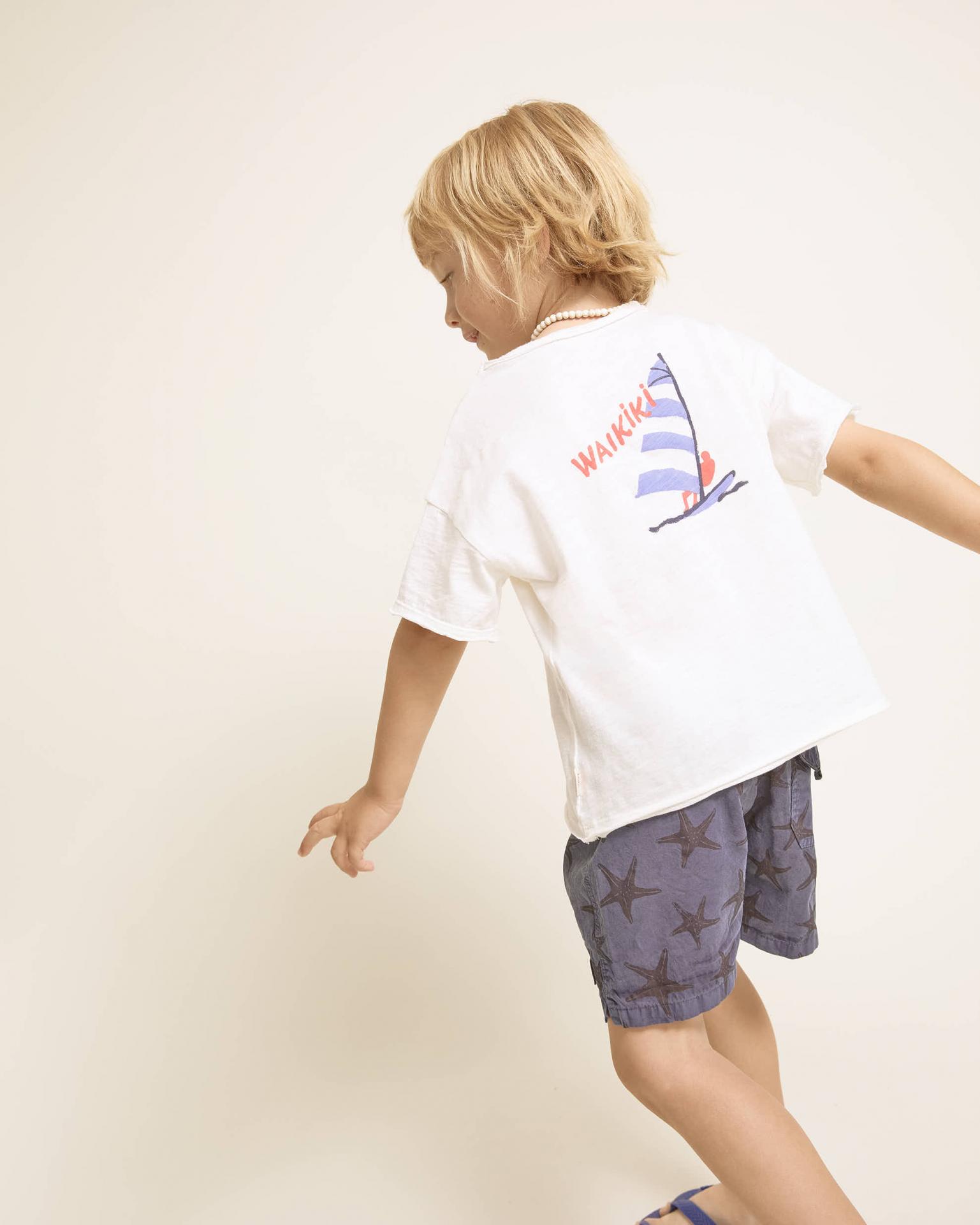 Bañador de algodón orgánico con estampado starfish. Goma elástica en cinturilla para una mejor sujeción. Cordón de algodón al tono ajustable en cinturilla. Etiqueta decorativa en el bajo. Bolsillo tipo plastrón en la espalda. Rejilla interior. 100% Algodón Orgánico. Forro: 100% Poliéster. Fabricado en España.