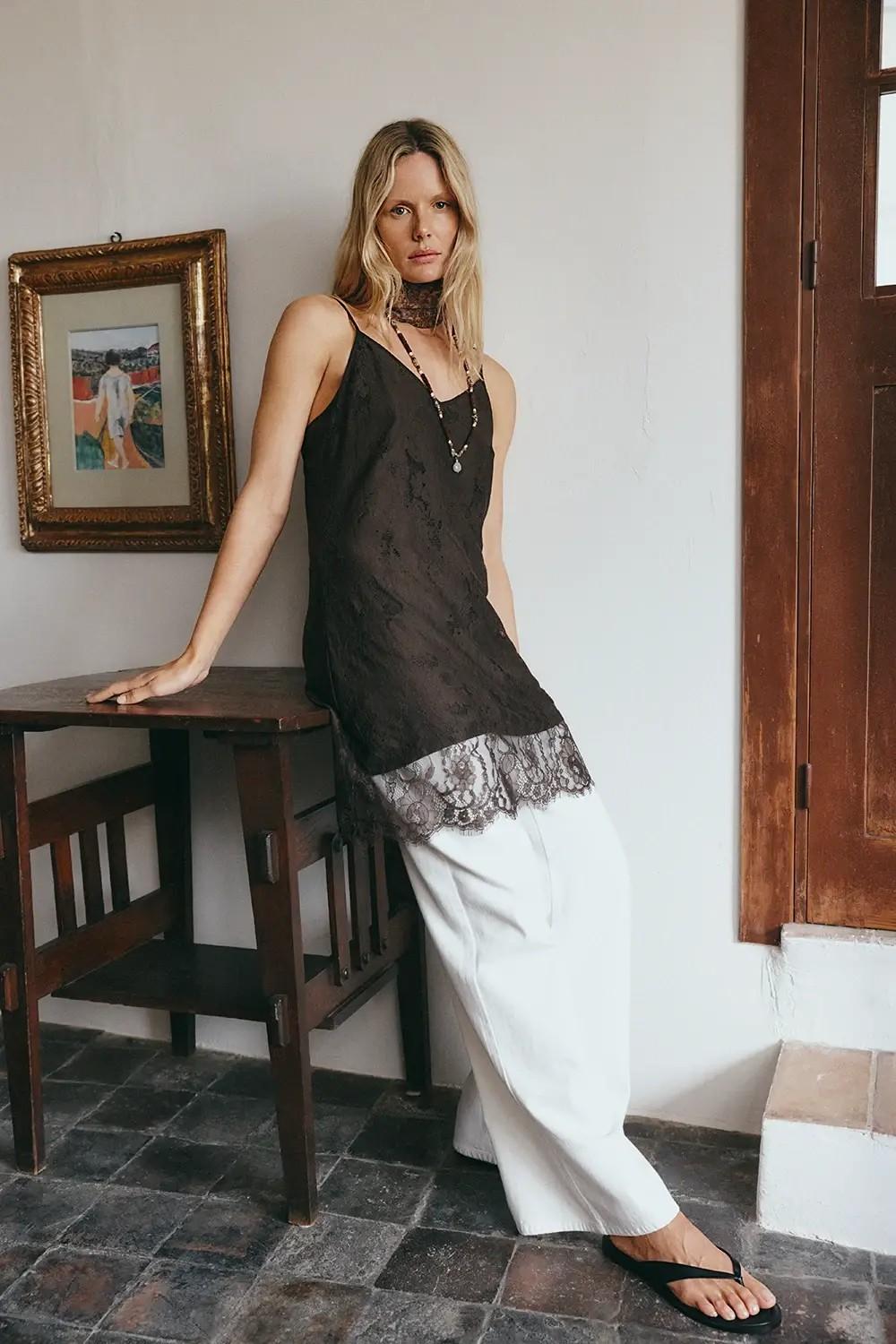 Vestido mini tirantes encaje marrón chocolate Amanda