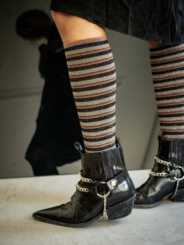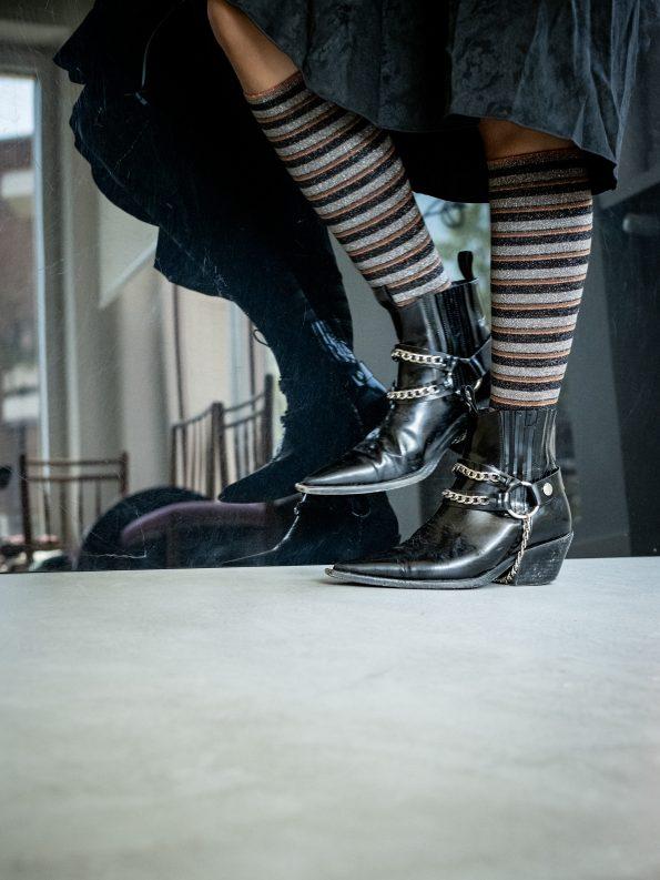 Calcetines de algodón egipcio, doble hilo de elastano y un suave lurex, que lavamos antes de tejer para que su suavidad esté garantizada.