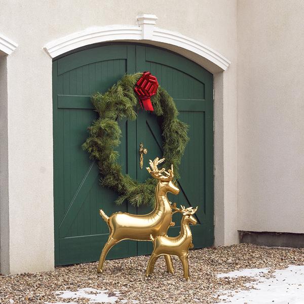 Globo de aluminio de pie, reno, dorado. Dimensiones antes del inflado: aprox. 124 x 80 cm; dimensiones después del inflado: aprox. 110 x 64 cm. Se infla con aire. Incluye pajita.