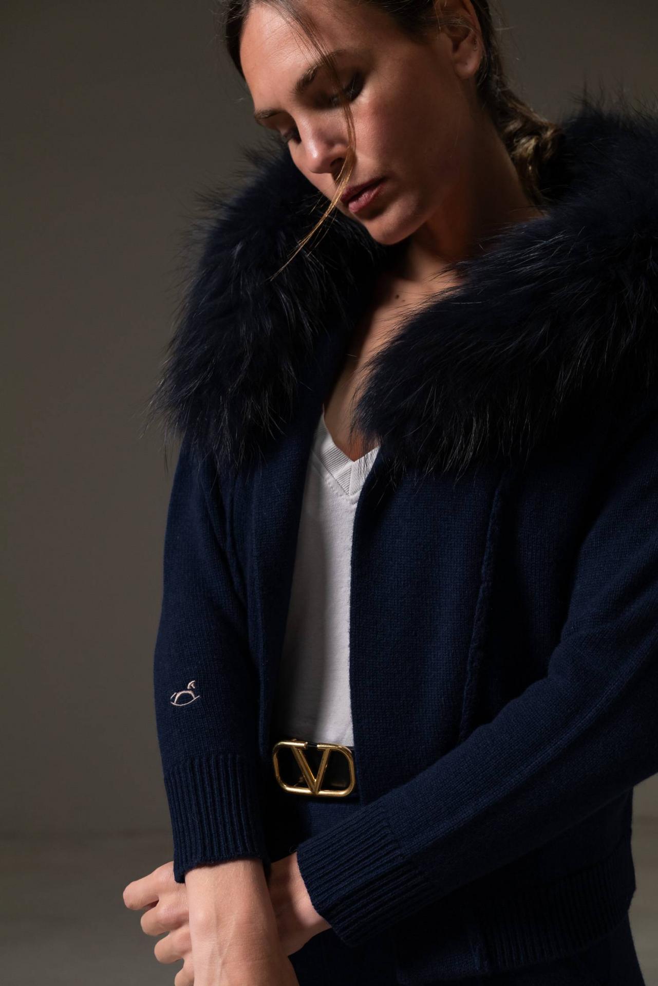 Con una suavidad sin igual, hemos diseñado este cárdigan bolero. La espectacularidad de esta pieza la conseguimos gracias a su tira de piel natural desmontable que rodea su capucha y gran parte de la solapa. Nos encanta su corte super moderno y estiloso. La fibra natural tiene gran capacidad de adaptarse a cada talla. Lleva varios cabos de cashmere por lo que es una prenda muy cálida Combínalo con nuestro pantalón en cashmere, una de nuestras faldas mini, o con nuestros vestidos de colección. Material: 30% cashmere y 70% lana 100% merino. Cuidado de las prendas: Lavado a mano en frío o en programa para prendas delicadas. Planchado del revés y a baja temperatura. Largo desde el hombro: 60 cm en talla S.