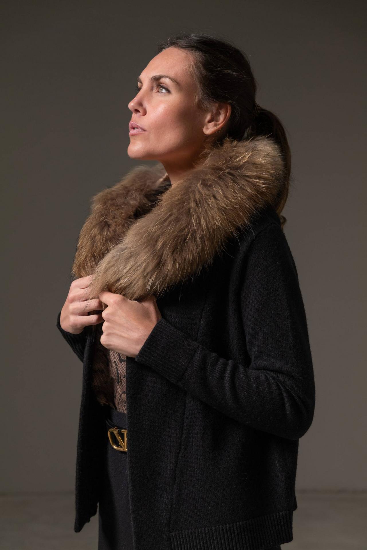 Con una suavidad sin igual, hemos diseñado este cárdigan bolero. La espectacularidad de esta pieza la conseguimos gracias a su tira de piel natural desmontable que rodea su capucha y gran parte de la solapa. Nos encanta su corte super moderno y estiloso. La fibra natural tiene gran capacidad de adaptarse a cada talla. Lleva varios cabos de cashmere por lo que es una prenda muy cálida Combínalo con nuestro pantalón en cashmere, una de nuestras faldas mini, o con nuestros vestidos de colección. Material: 30% cashmere y 70% lana 100% merino. Cuidado de las prendas: Lavado a mano en frío o en programa para prendas delicadas. Planchado del revés y a baja temperatura. Largo desde el hombro: 60 cm en talla S.