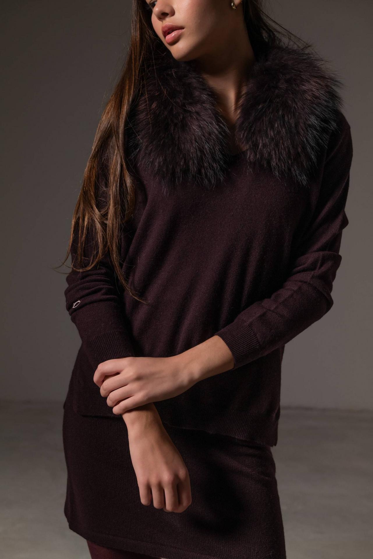 Jersey con escote de pico en cashmere y aberturas laterales. Es uno de nuestros mejores básicos. Su cuello de piel desmontable con botones ocultos te permitirá utilizarlo en todas las estaciones del año, tu mejor fondo de armario. Combínalo con nuestra falda flare o nuestro pantalón wide leg. La fibra natural tiene gran capacidad de adaptarse a cada talla. Material: 30% cashmere y 70% lana 100% merino. Cuidado de las prendas: Lavado a mano en frío o en programa para prendas delicadas. Planchado del revés y a baja temperatura. Largo desde el hombro: 67 cm en talla S.