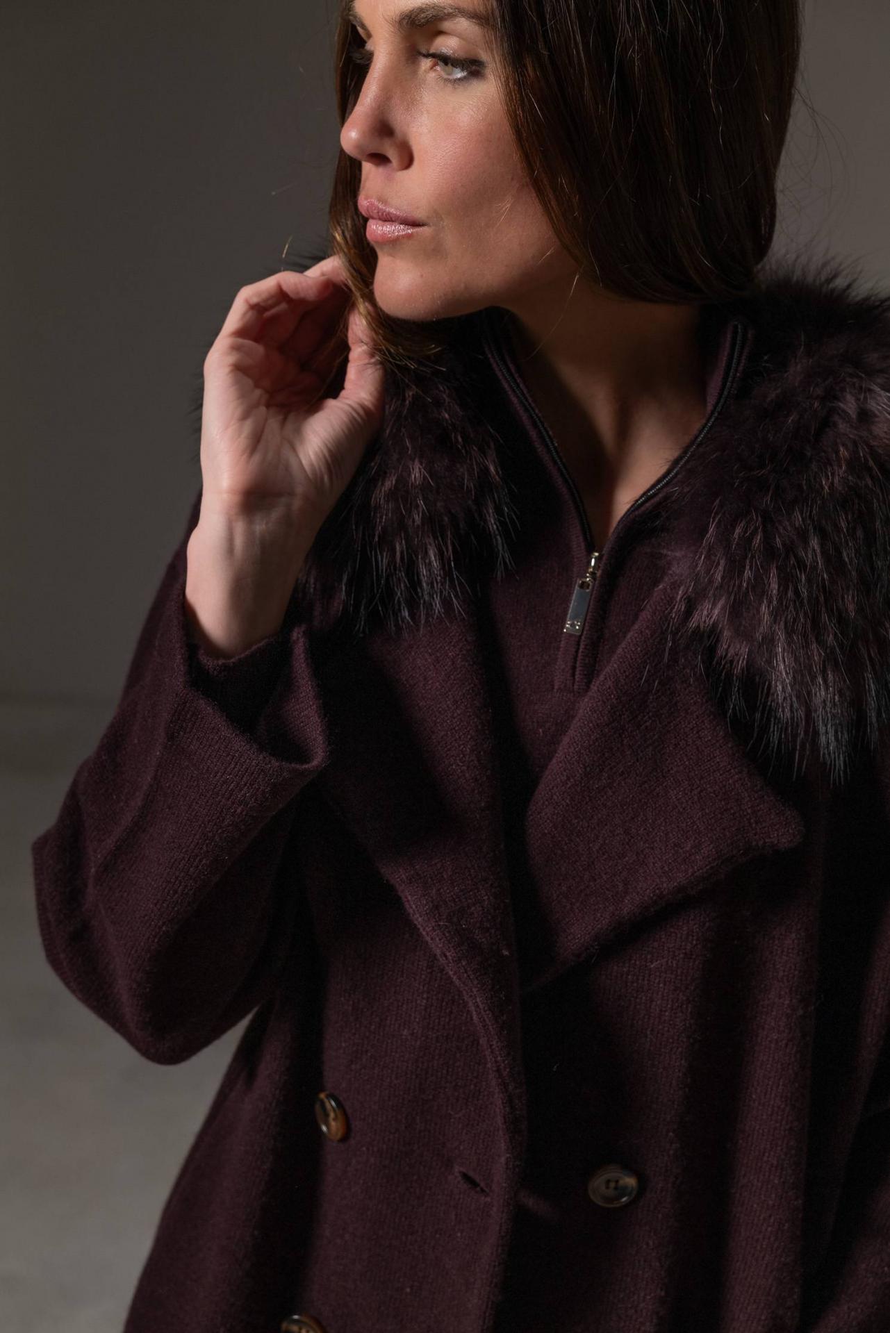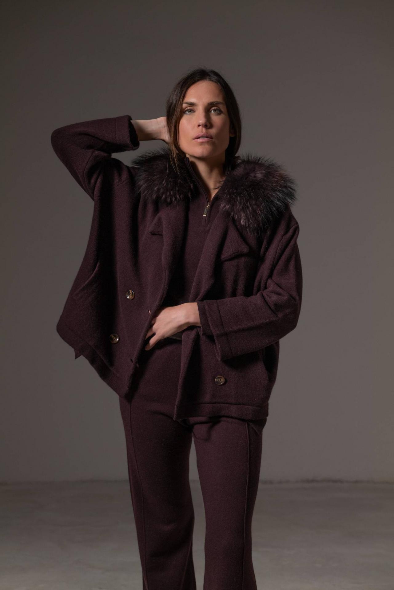 Abrigo corto confeccionado en cashmere. Añade un toque moderno y cómodo a tu vestuario con esta prenda cropped de súper tendencia. Con un mayor gramaje, conseguimos que sea una prenda muy cálida y confortable, gracias a su cierre de botones cruzados. La fibra natural tiene gran capacidad de adaptarse a cada talla. Un abrigo corto, que debe estar en la lista de tus prendas top de tu vestidor este invierno. Con el cuello de piel natural desmontable podrás personalizar tu look. Combínalo con nuestro pantalón en cashmere, una de nuestras faldas mini, o con nuestros vestidos de colección. Material: 30% cashmere y 70% lana 100% merino. Cuidado de las prendas: Lavado a mano en frío o en programa para prendas delicadas. Planchado del revés y a baja temperatura. Largo desde el hombro: 67 cm en talla S.