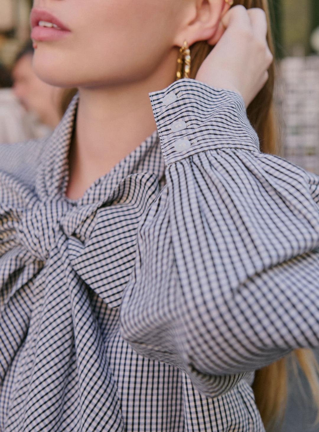 ¿Por qué nos gusta? Esta camisa con cuello alto fruncido añade un toque chispeante a tus looks gracias a su estampado de cuadros vichy. Ideal para la vuelta a la rutina, combina estilo y dinamismo para empezar la temporada con elegancia.