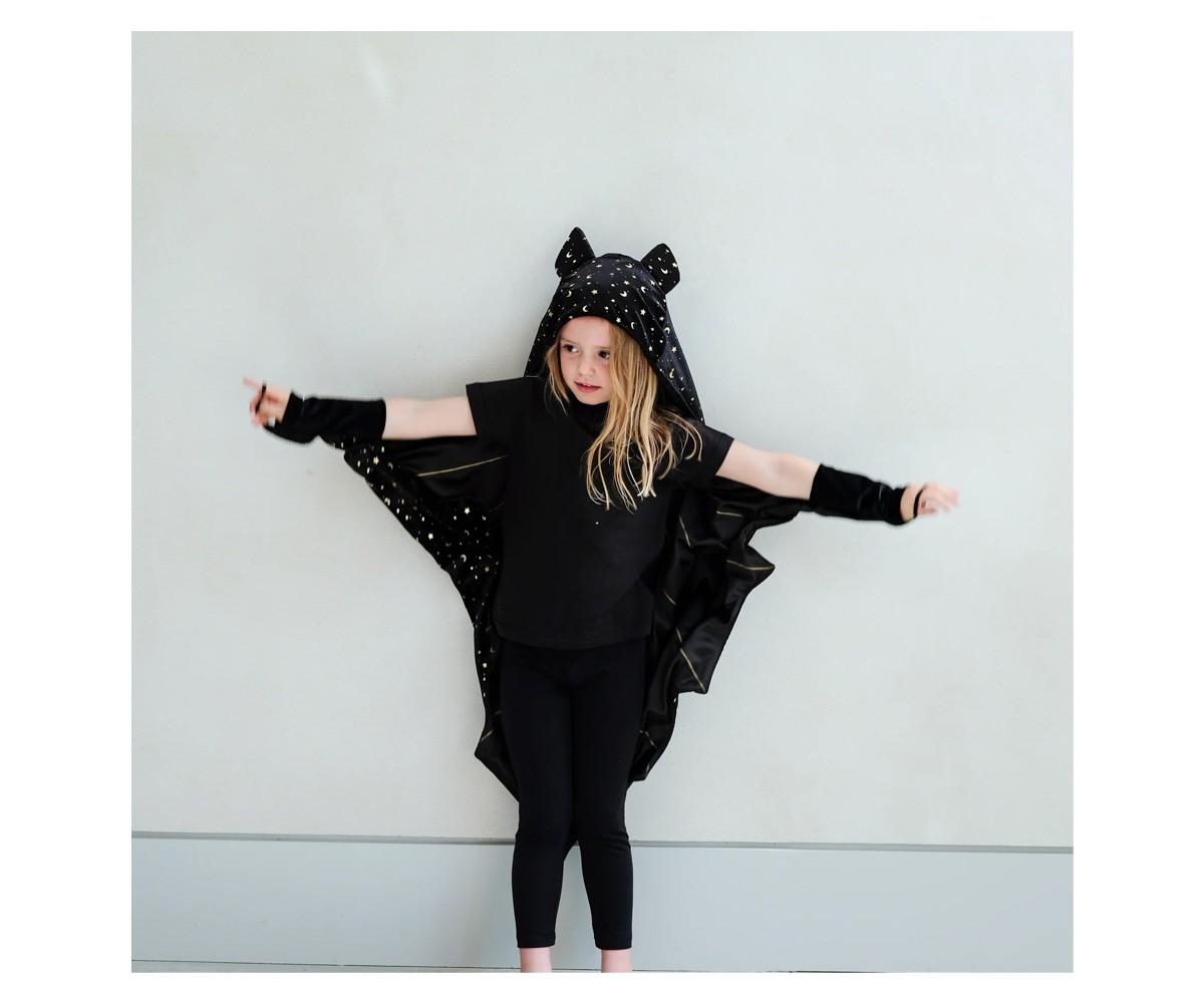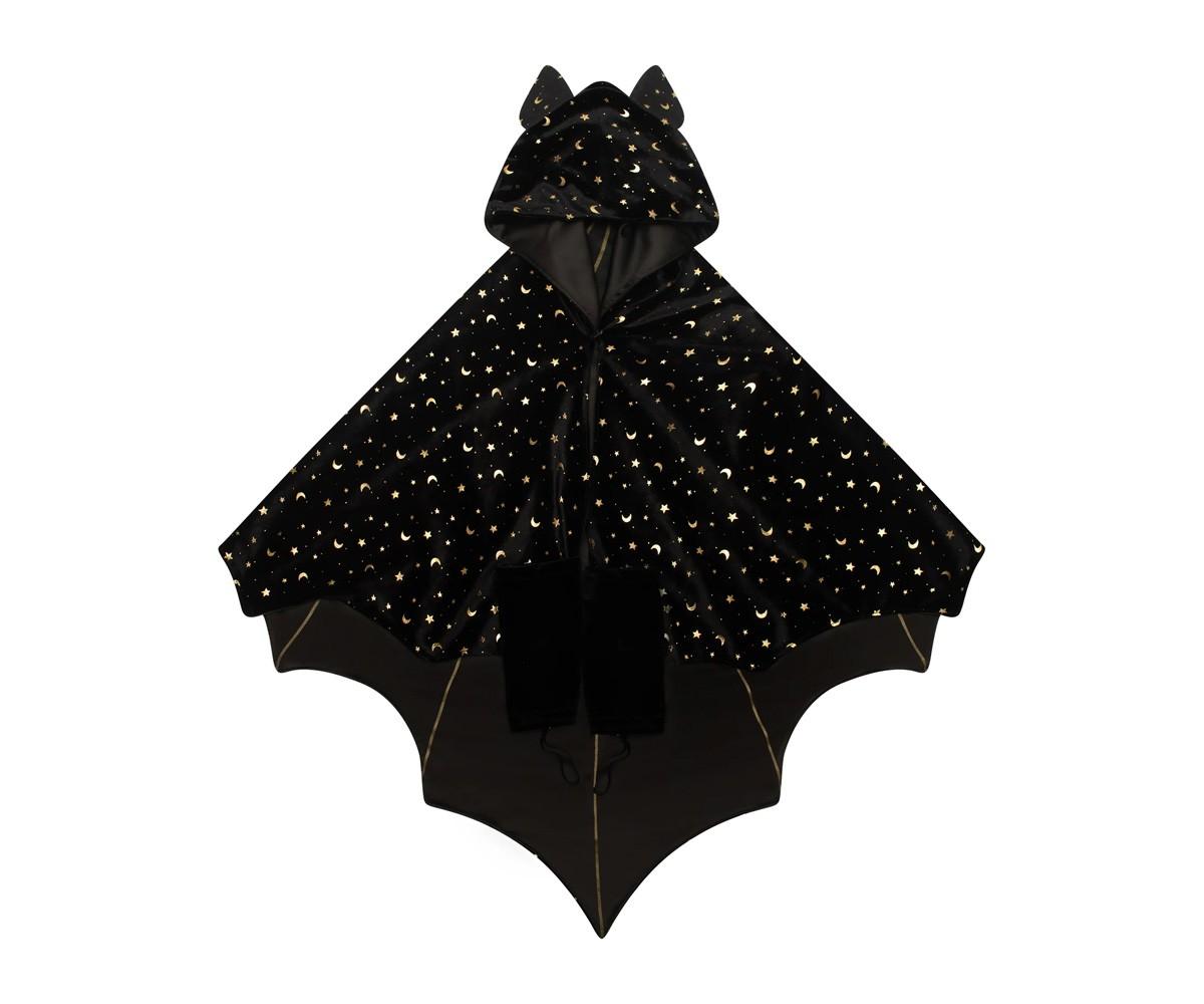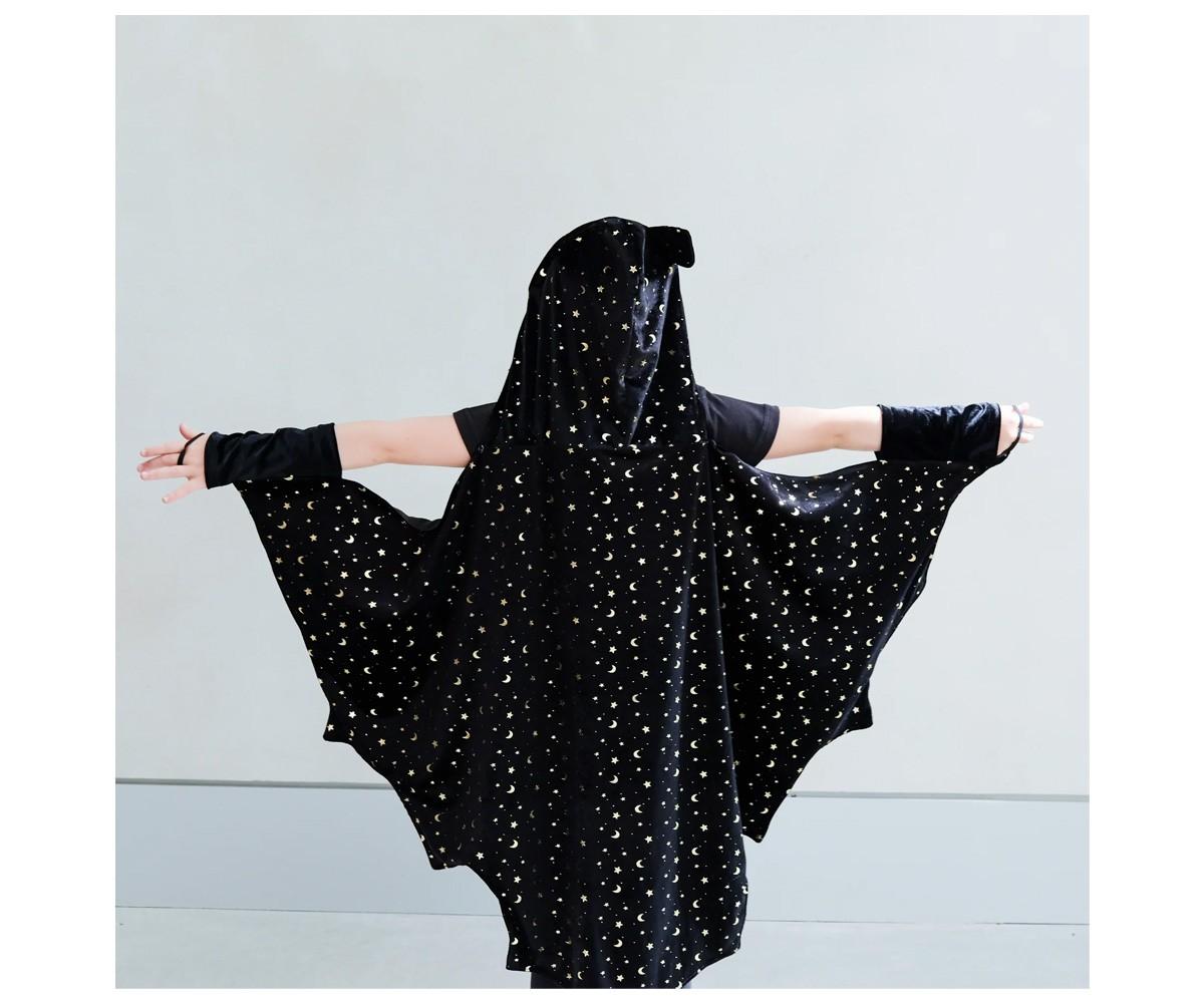 Adornada con lunas y estrellas doradas, esta divertida capa con capucha es perfecta para cualquier celebración de Halloween.