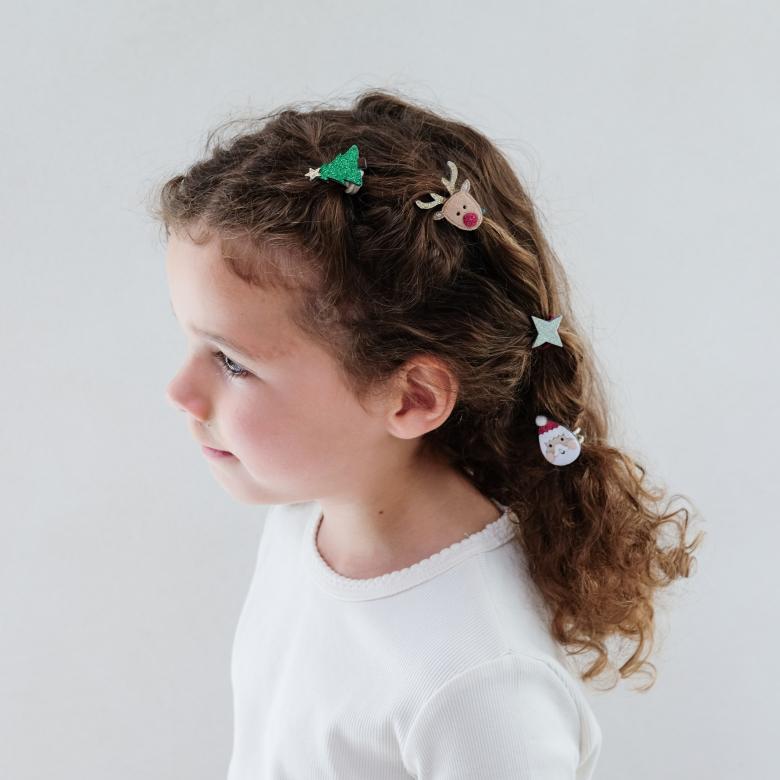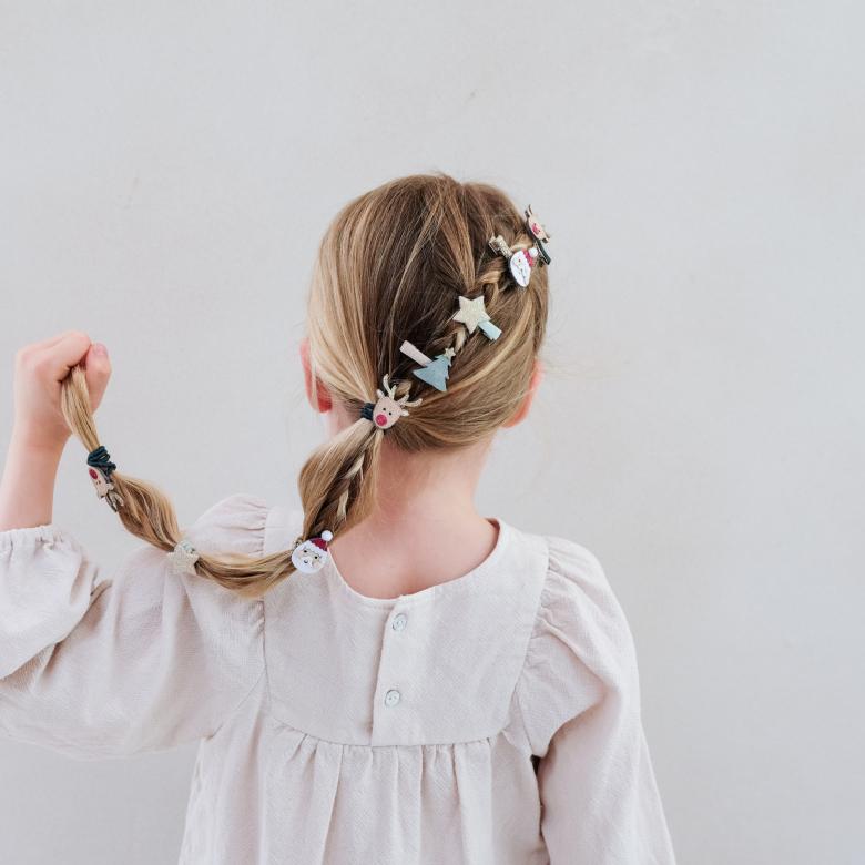 Saluda a Papá Noel y a su adorable compañero con este maravilloso nuevo pack de ponis. Seis ponis de tamaño real en una fabulosa paleta festiva de rojos, verdes y dorados: ¡son perfectos! 6 por pack. 5 cm de elásticos resistentes. Papá Noel, estrellas y renos están confeccionados con una mezcla de gamuza suave, purpurina y telas metálicas.