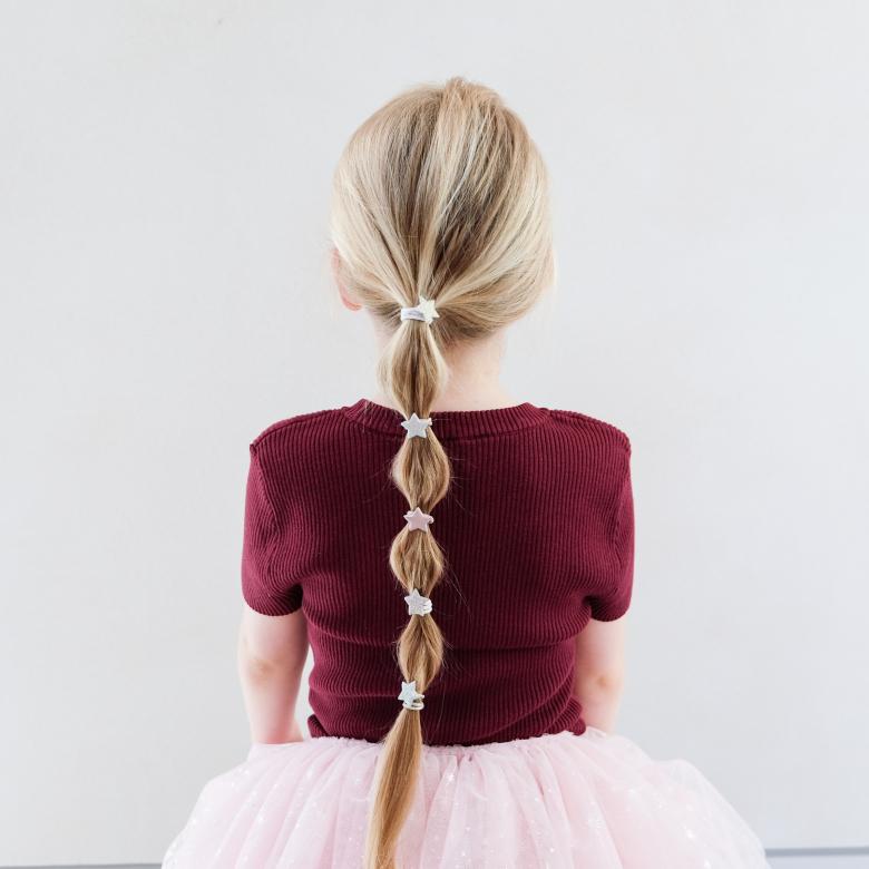 ¡Dale un toque mágico a su cabello con nuestras colas de caballo estrelladas! Con estrellas en capas con brillantes brillos y detalles metálicos, ¡estas colas son perfectas para alegrar la temporada festiva y cualquier día! 8 por paquete. Estrellas elaboradas con una mágica mezcla de telas metálicas y brillantes. 5 cm de diámetro, elásticos resistentes en una paleta de tonos neutros.