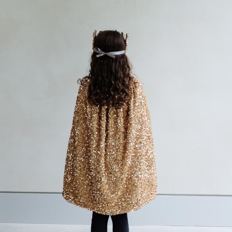 Regálales una capa que brille tanto como su personalidad. ¡Perfecta para deslumbrantes disfraces, fiestas o simplemente porque sí! ¡Combínala con nuestra corona de lentejuelas a juego para un look realmente majestuoso! Capa de tela con lentejuelas doradas, forro de satén gris suave y lazo de cinta con cierre de botón a presión. Seguridad probada. Limpieza solo con paño. La capa mide aprox. 70 cm de largo.