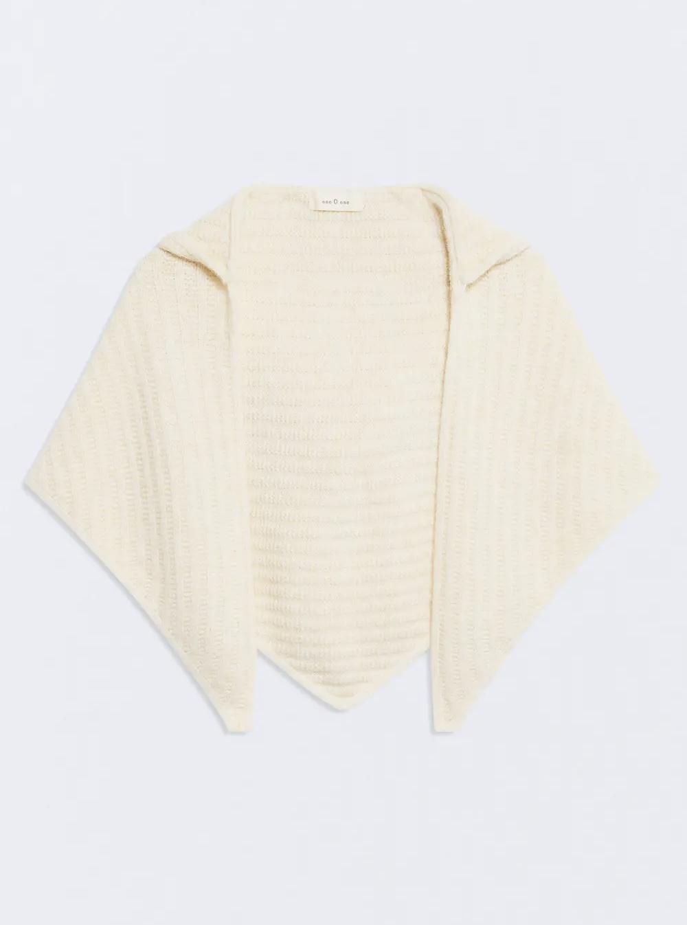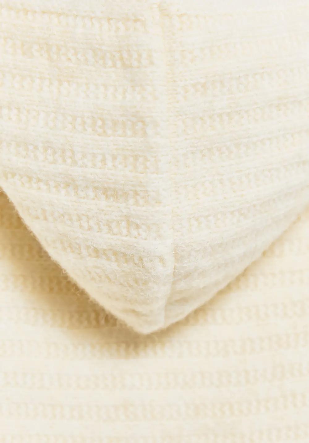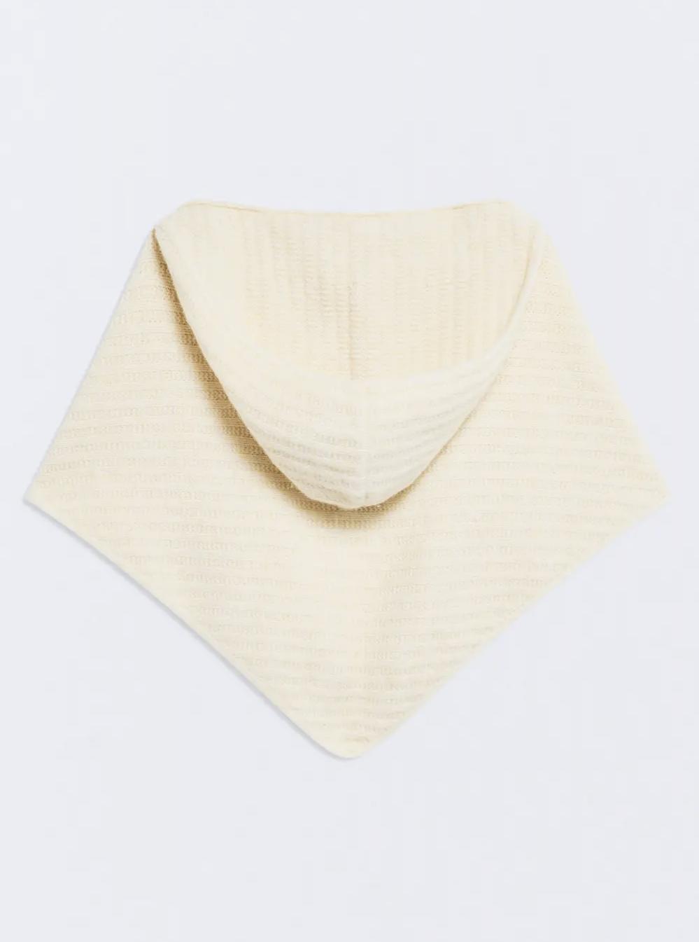Toquilla de tricot con capucha en color soja. Medidas: 45 x 90 cm.