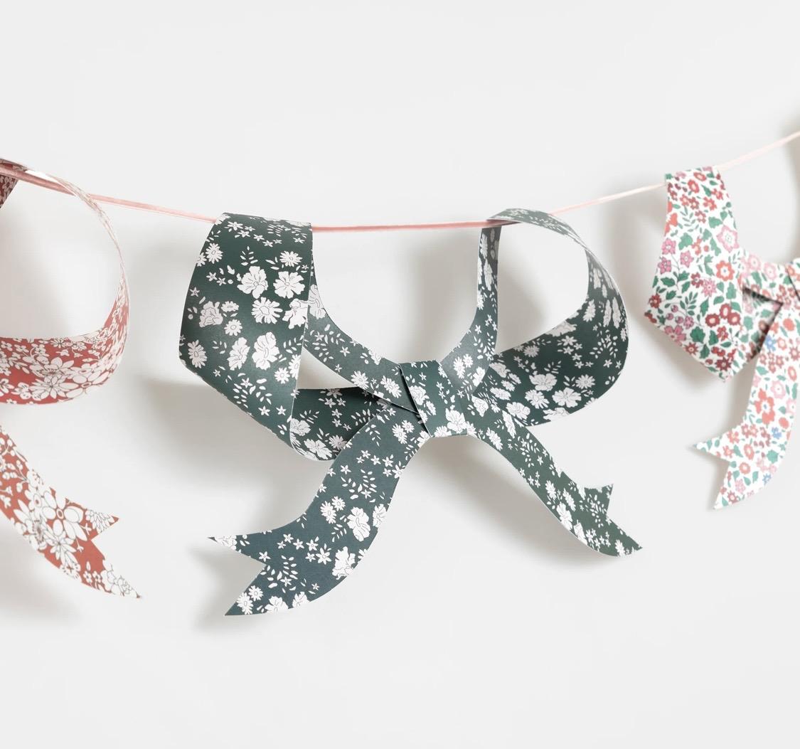 Guirnalda de papel con 8 banderines de lazo 3D con estampados florales festivos Liberty