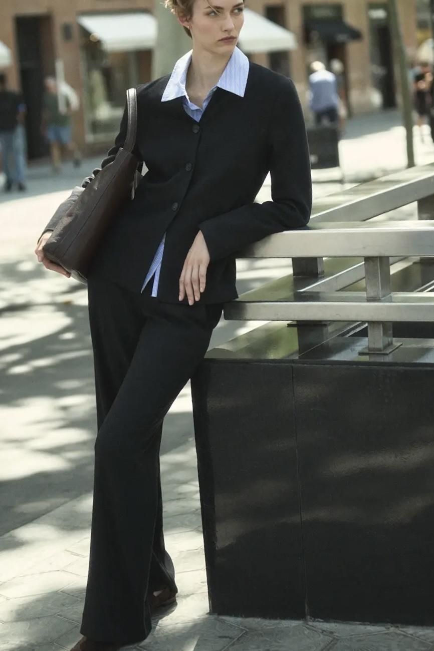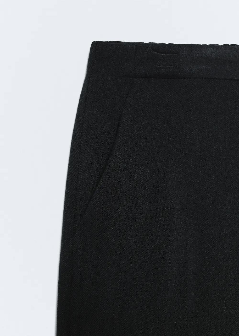 Pantalon sastrero en tejido fluido. Pierna larga y ancha. Bolsillo en diagonal. Goma en cintura trasera. Largo prenda para talla S: 104,5 cm.