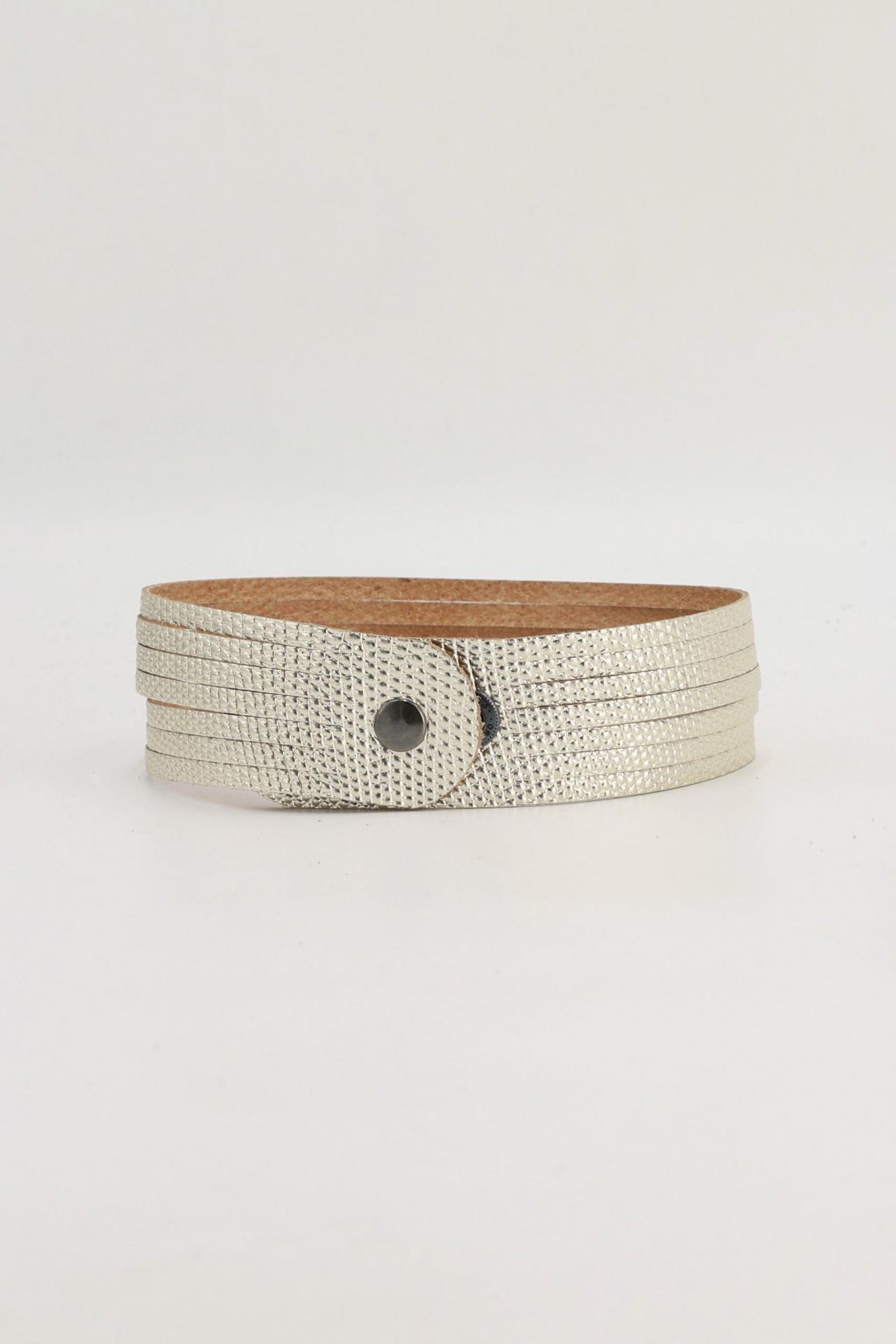 Choker de tiras de piel en color dorado claro.