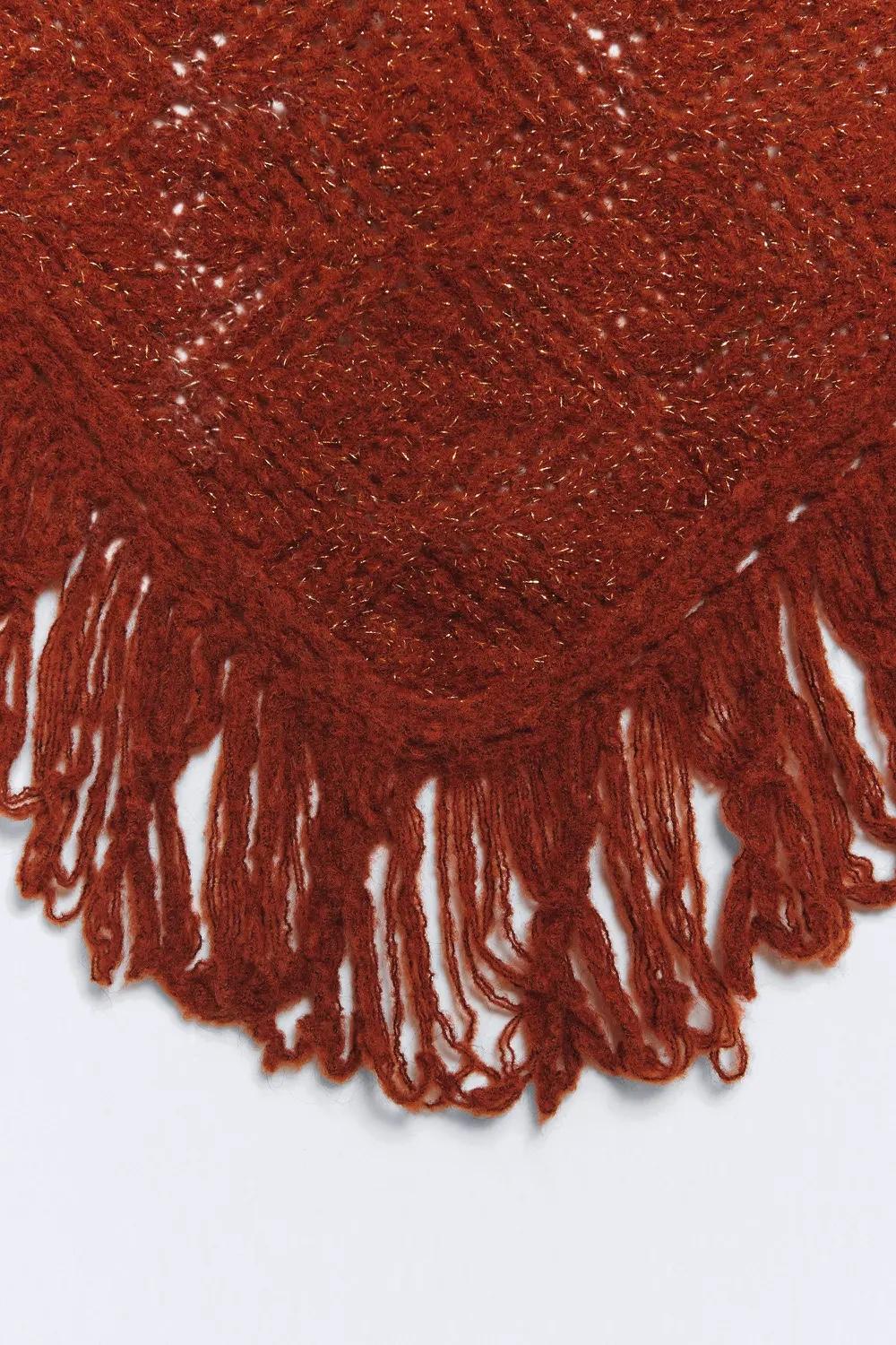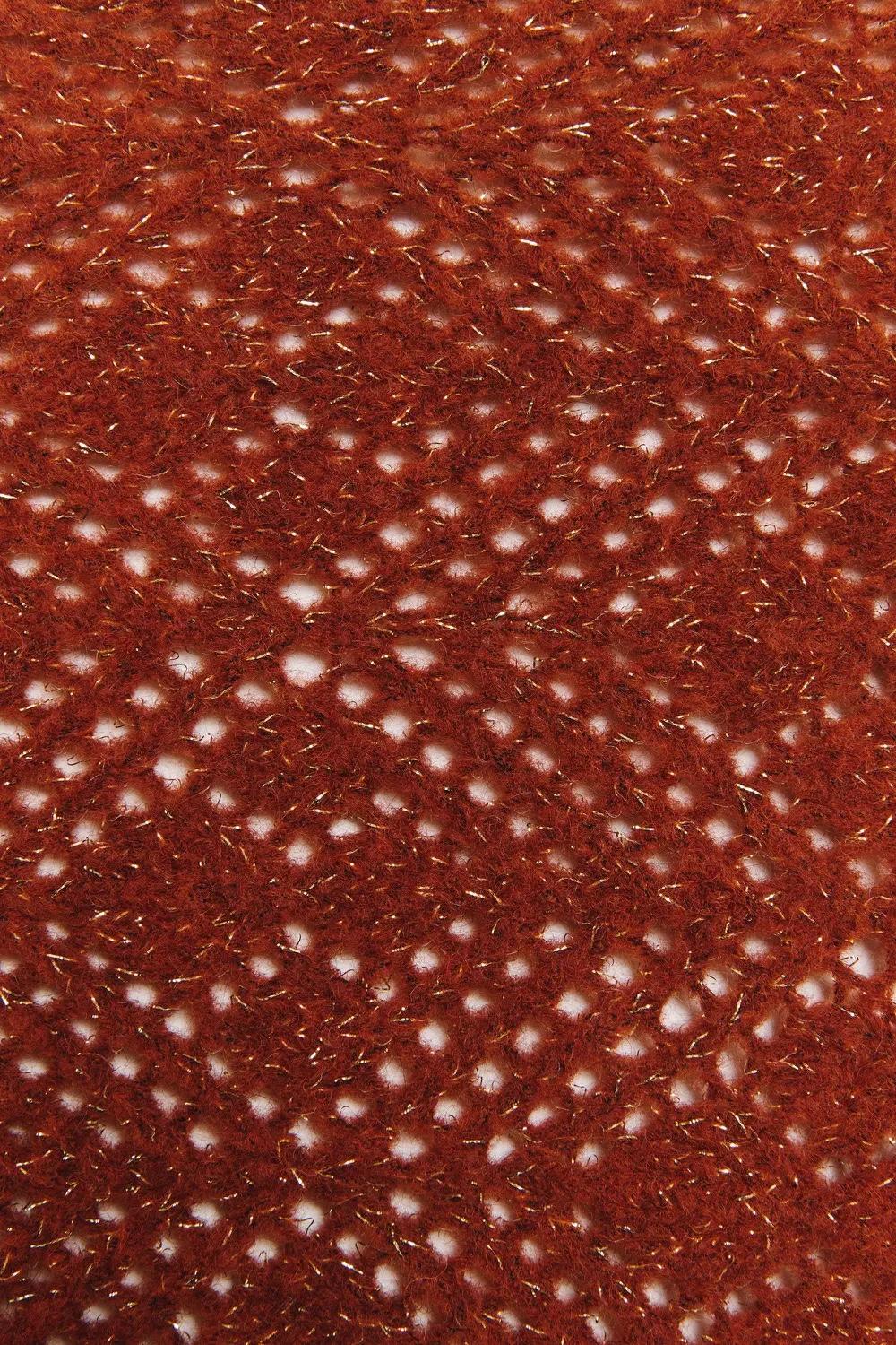 oquilla de tricot con punto tejido y diseño calado. En color terracota. Medidas: 50 x 145 cm.