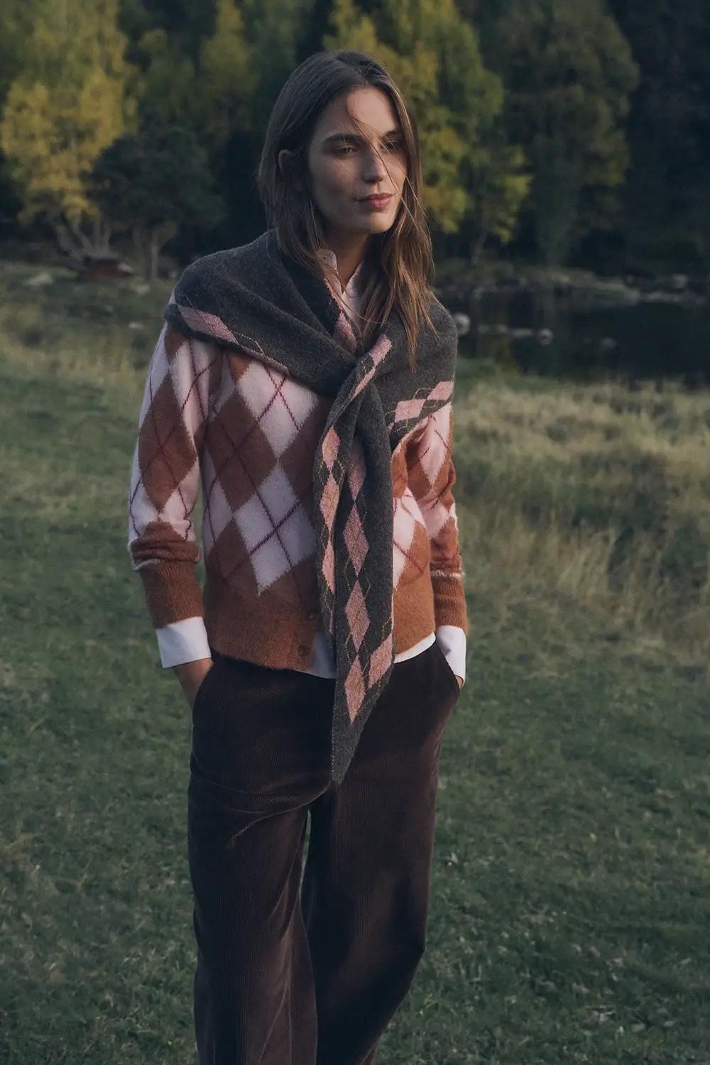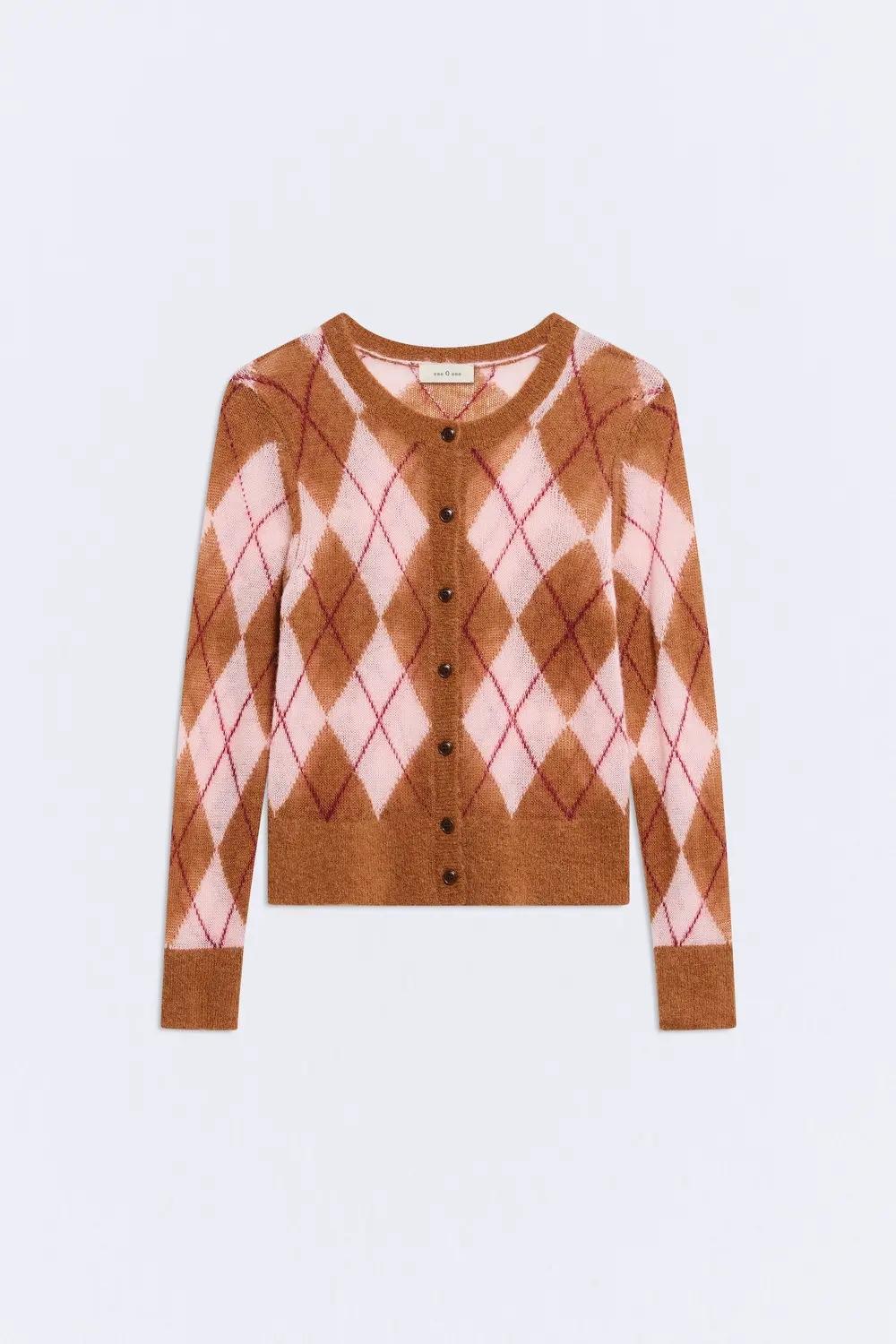 Cardigan rombos lana alpaca rosa y caramelo Charles