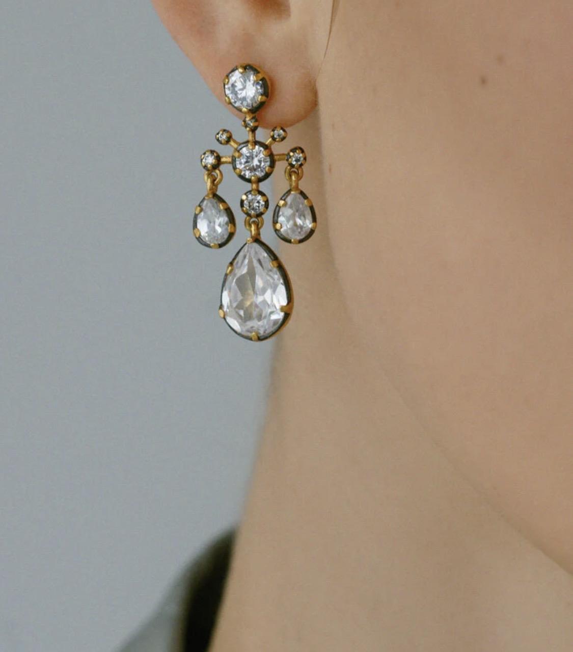 Bianca, una oda a la elegancia clásica: cristales tallados que descienden en armonía hasta una lágrima central, símbolo de sofisticación.. Cada piedra se realza con una sutil línea de rodio que la enmarca delicadamente, intensificando su brillo y resaltando su carácter único.El contraste entre el baño dorado y el resplandor del rodio convierte a esta pieza en un pieza atemporal. Los Bianca no son solo pendientes: son una declaración de estilo que viste de distinción y celebra la feminidad en su máxima expresión.