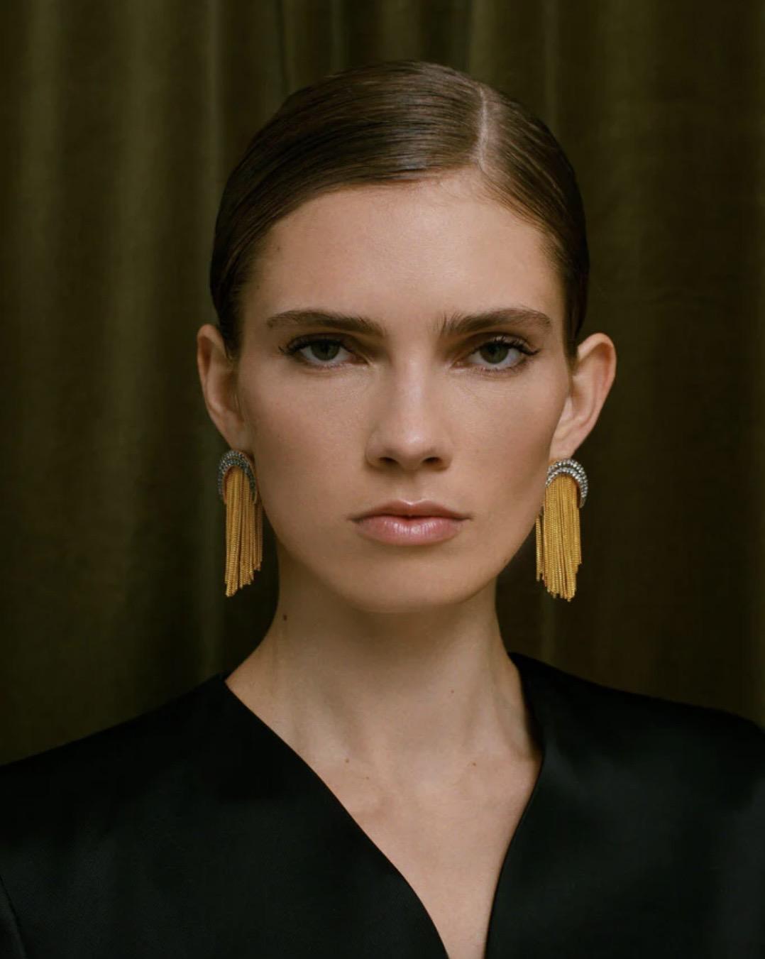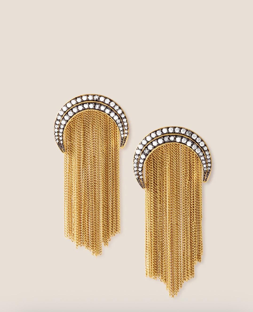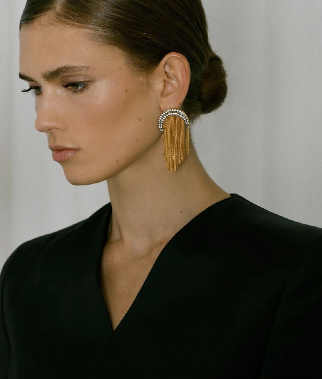 Los pendientes Alice combinan fuerza y movimiento en un diseño único que evoca la elegancia atemporal. Su estructura en forma de media luna, realzada con circonitas engastadas sobre base de rodio con acabado blackish, aporta un contraste sofisticado y luminoso. De cada media luna nacen delicadas mini cadenas bañadas en oro de 24 k, que caen en cascada creando un efecto dinámico. Una pieza diseñada para brillar.