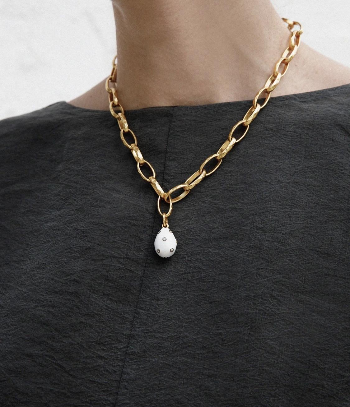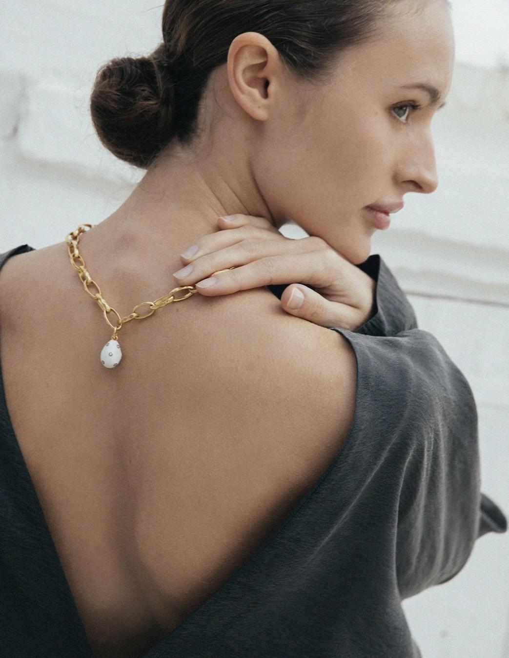 Gracias a su anilla de quita y pon, se adapta con facilidad a nuestras cadenas de 44 cm y 55 cm o a la nueva cadena Cora, añadiendo un guiño elegante a cualquier look.