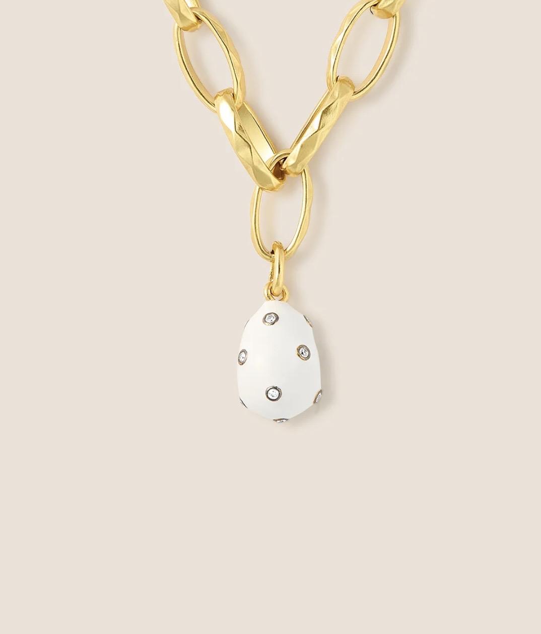 El Charm Alina, con su acabado en esmalte blanco y brillantes circonitas incrustadas, refleja la esencia de Theodore: diseño atemporal y un toque de sofisticación .