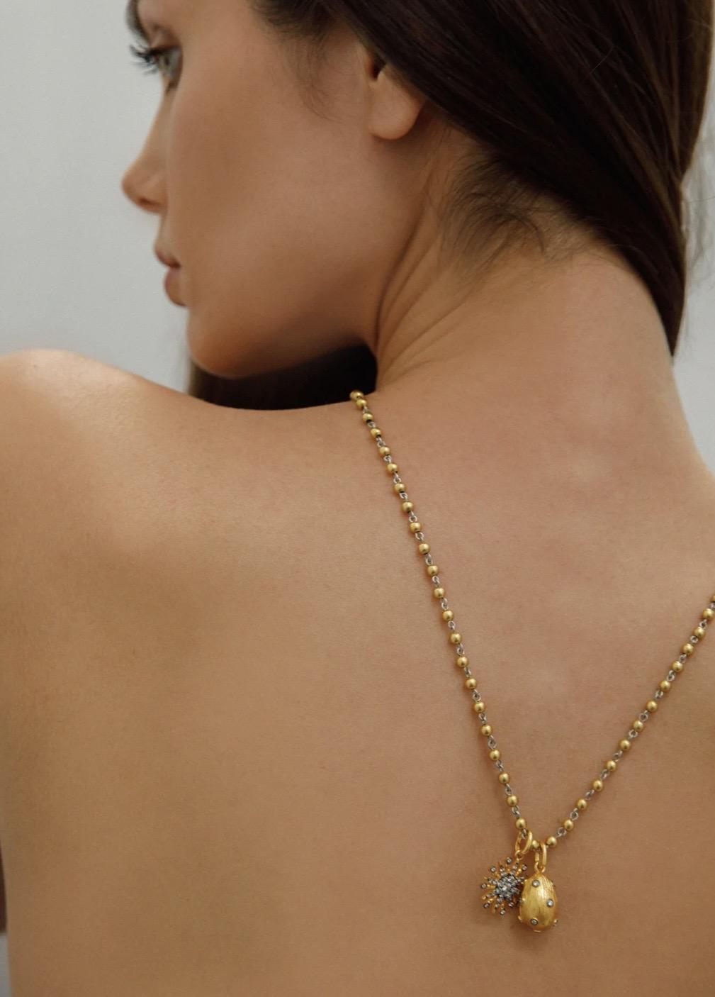 Cadena de bolitas combinando baño de oro y plata , versátil y elegante, esta cadena de 55 cm está bañada en oro de 24 quilates, diseñada para realzar la belleza de cualquier charm.