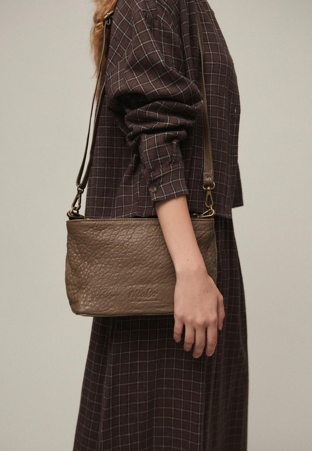 Bolso doble asa de piel. Cierre mediante cremallera metálica. Bolsillo interior de piel. Medidas: Asa larga 111cm, asa corta 43cm, 25cm largo,17cm alto, 7cm ancho.