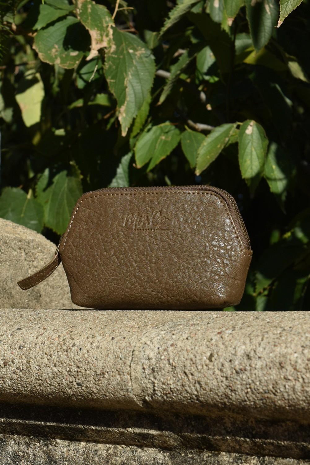 Monedero de piel. Cierre con cremallera metálica, interior forrado y con bolsillo tarjetero. Medidas: 16cm largo, 10cm alto,3,5cm ancho.