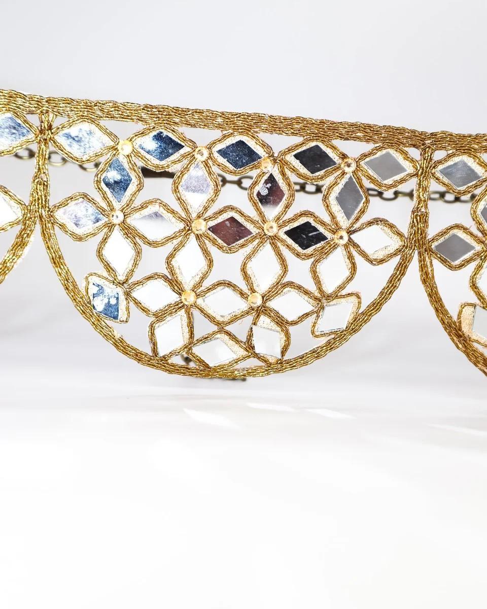 Pieza artesanal que destaca no solo por su diseño único y original, si no por su peso ligero y delicadeza. Esta joya única realizada con espejos, atrapa la luz e ilumina cada paso creando un juego hipnotizante de reflejos. ¡Deslumbra en cualquier ocasión!