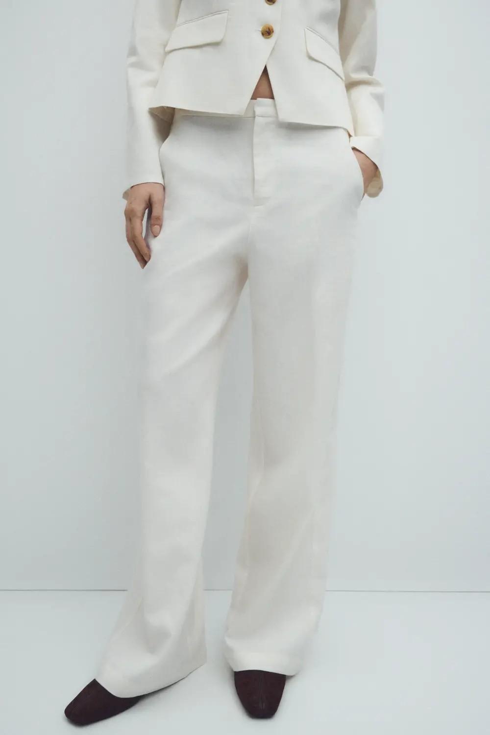 Pantalón de tiro alto en tejido de lino y algodón.