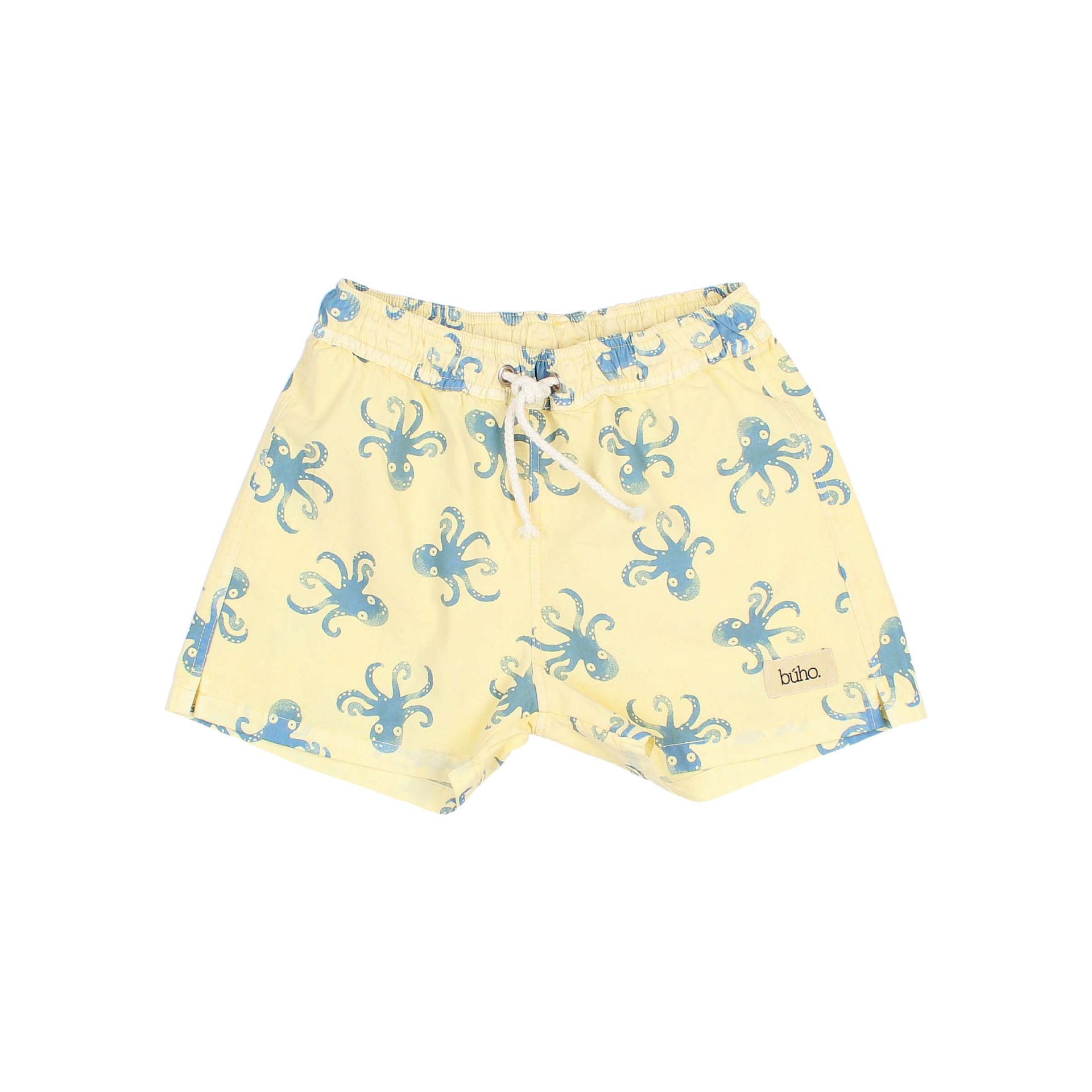 Bañador de algodón orgánico con estampado octopus. Goma elástica en cinturilla para una mejor sujeción. Cordón de algodón crudo ajustable en cinturilla. Etiqueta decorativa en el bajo. Bolsillo tipo plastrón en la espalda. Rejilla interior. 100% Algodón Orgánico. Forro: 100% Poliéster. Fabricado en España.