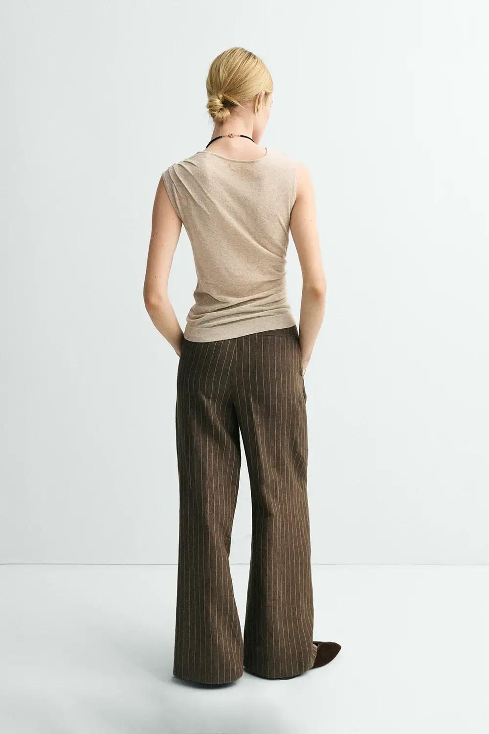 El top Kairos se convierte en una pieza versátil y sofisticada, perfecta para combinar con pantalones o faldas y crear looks elegantes.