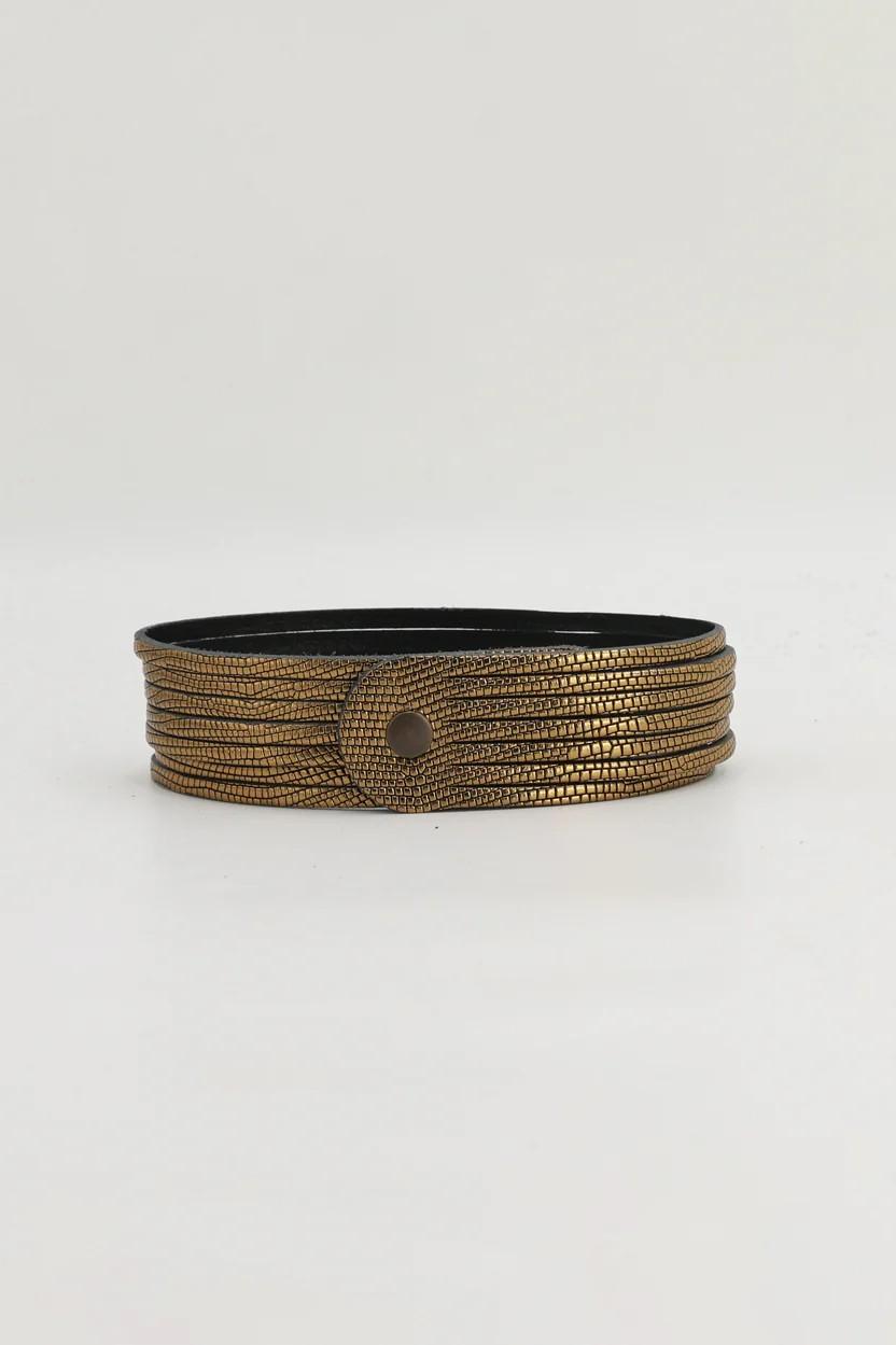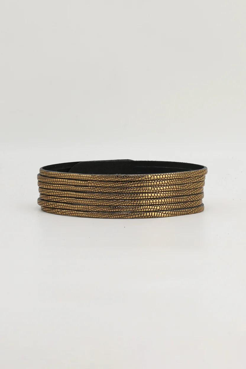 Choker de tiras de piel en color dorado.