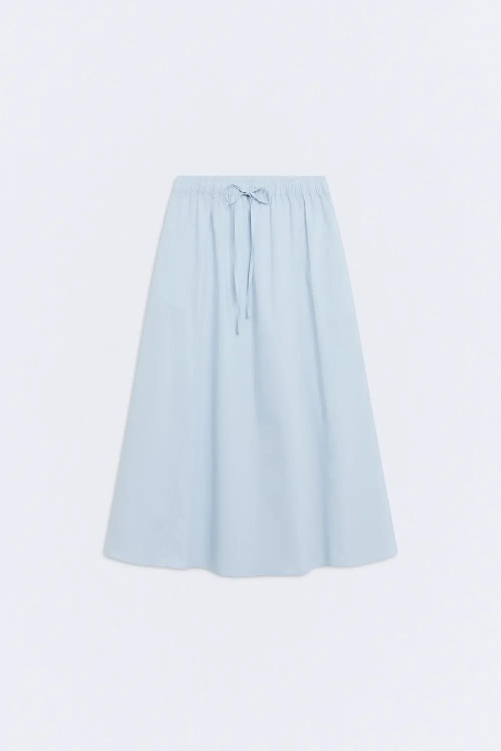 La falda Bubble es una prenda evasé confeccionada en tejido ligero, en un tono azul claro que aporta delicadeza y movimiento.