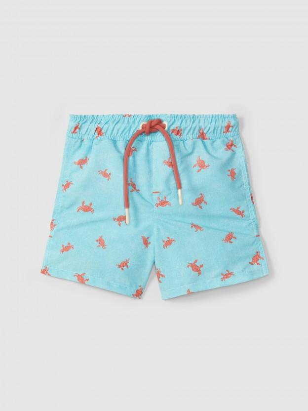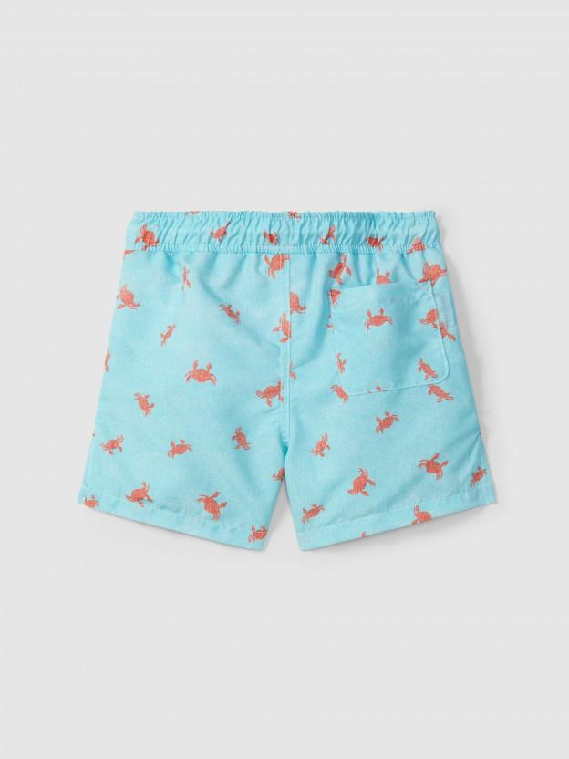 Bañador de niño con estampado de cangrejos y bolsillo trasero. Cordón funcional en la cintura para un mejor ajuste.