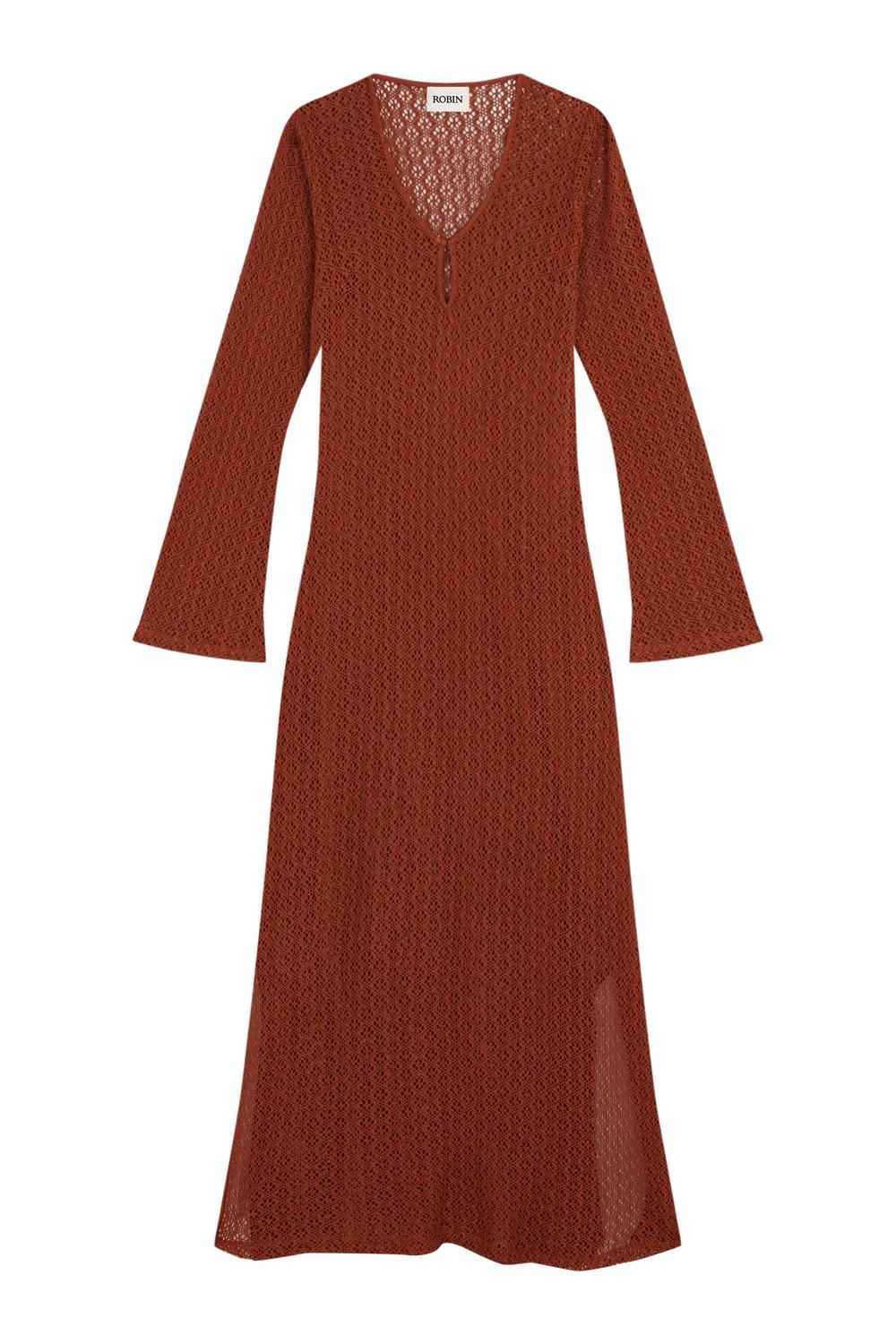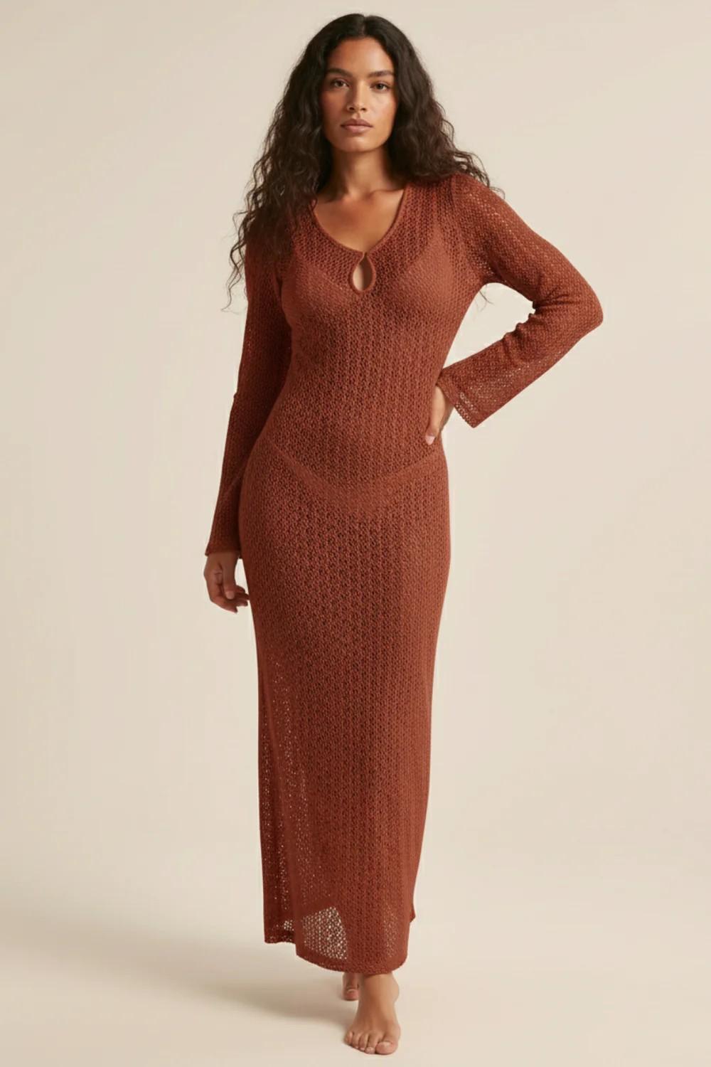Vestido Chocolate de crochet en color marrón.