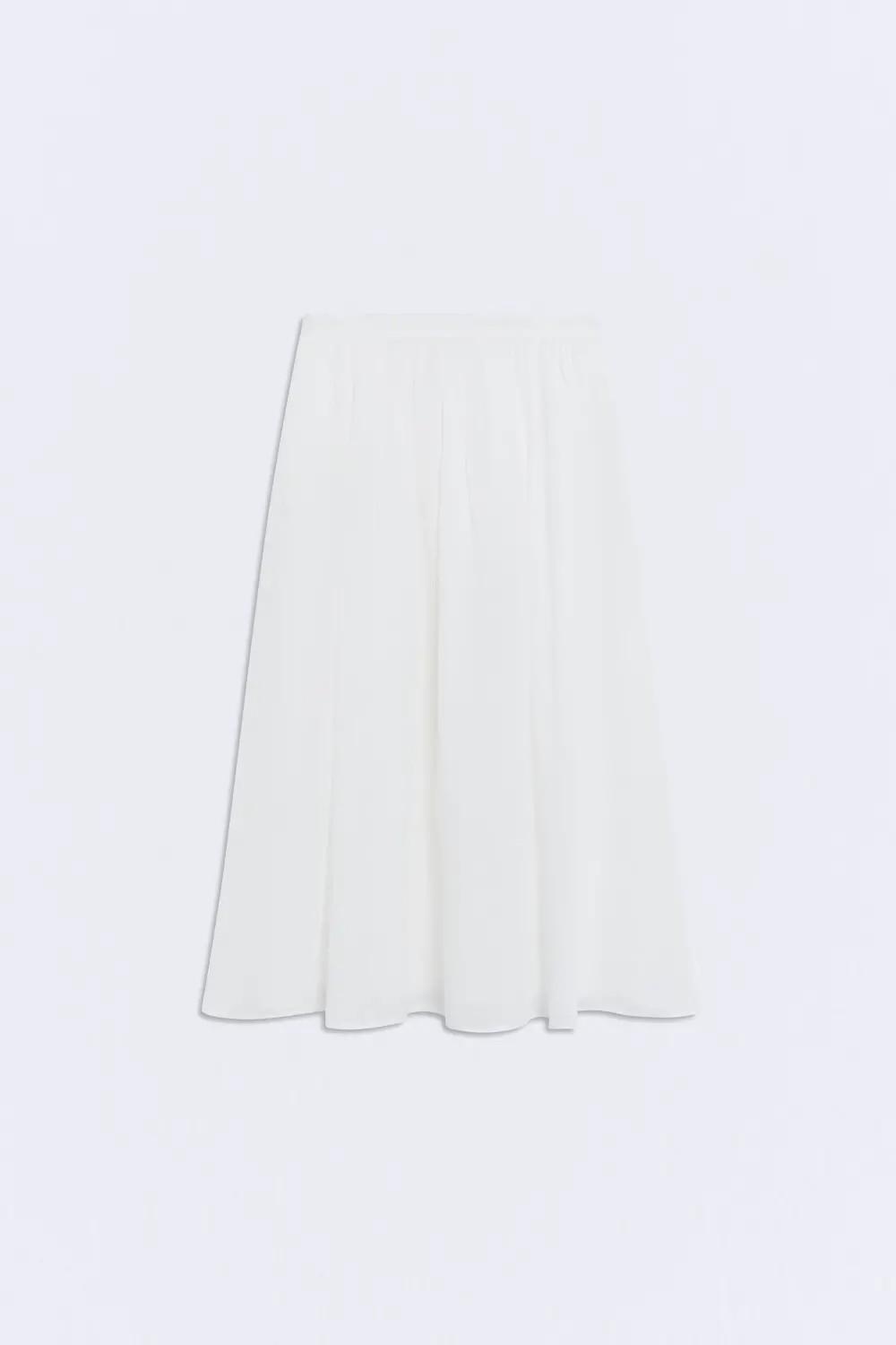 La falda Creta está confeccionada en 100% ramio, en color blanco, con un tejido natural que aporta frescura y ligereza.