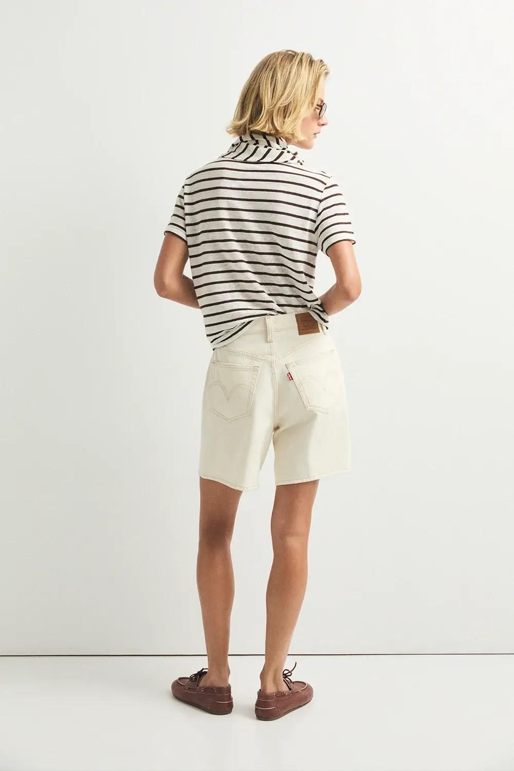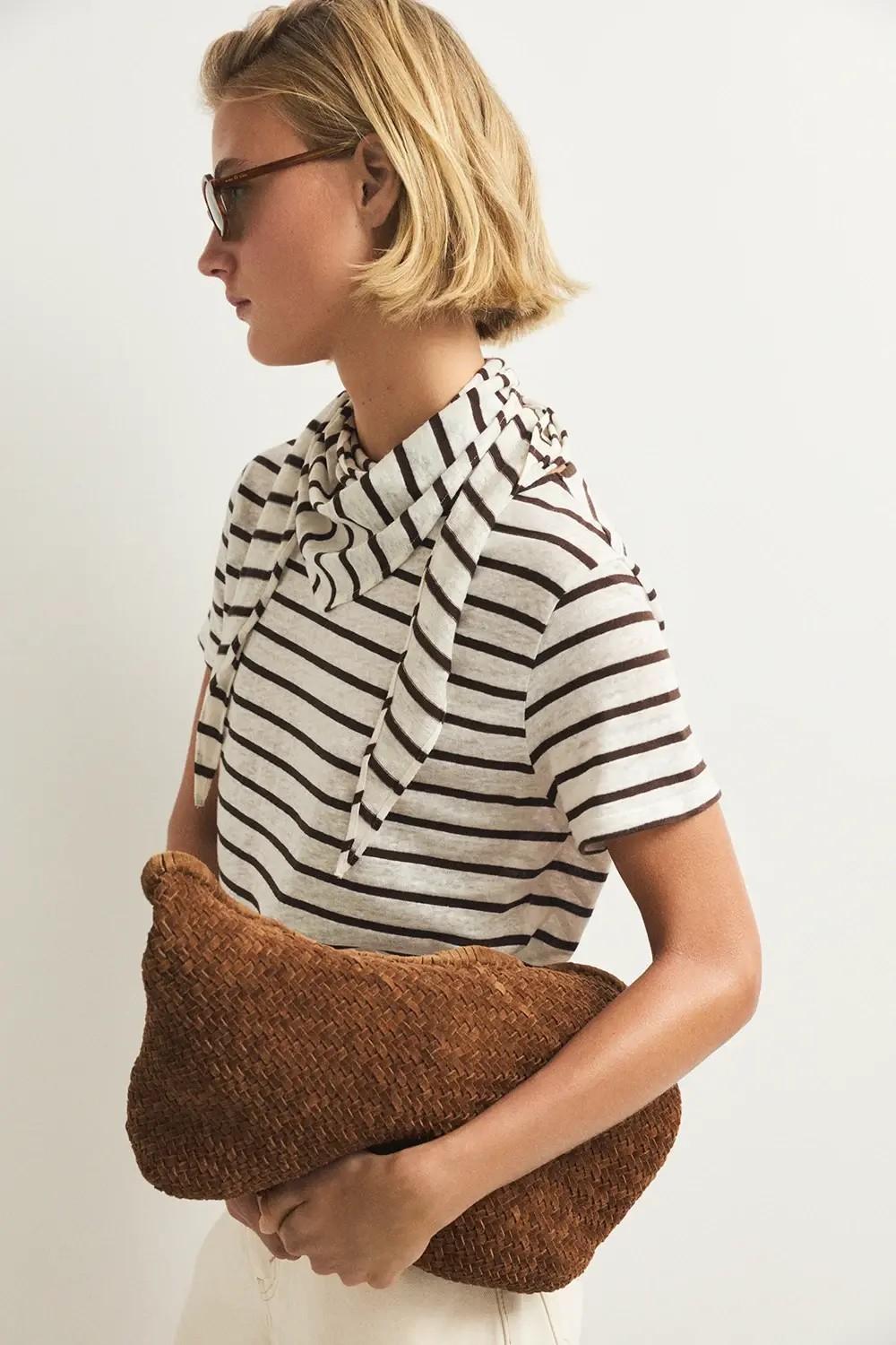La camiseta Begur se puede combinar con tejanos, pantalones de lino o faldas fluidas, creando looks relajados y elegantes para el día a día.