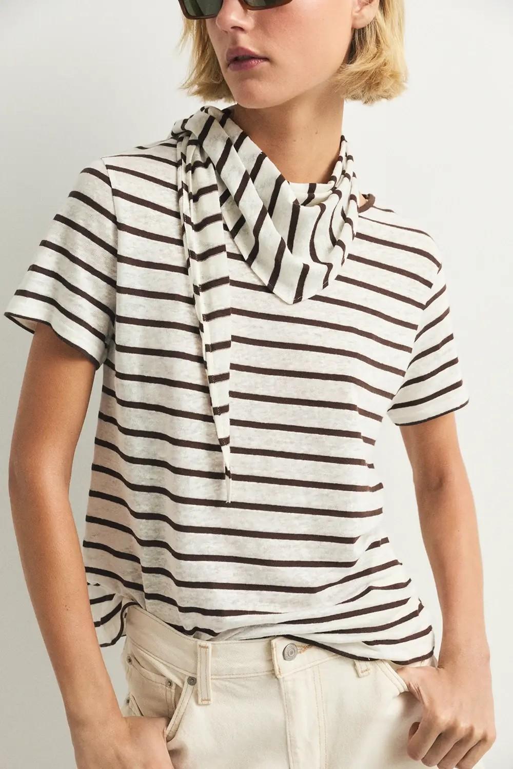 La toquilla Begur es un accesorio ligero y versátil, diseñado para complementar tus looks con estilo. Con estampado de rayas marrones y ecru, aporta un toque fresco y elegante a cualquier conjunto. Confeccionada en mezcla de lino y algodón y fabricada en Portugal, combina suavidad y comodidad. Con camiseta a conjunto de venta por separado.