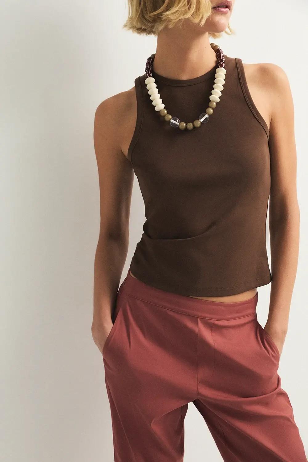 El top Zoe se puede llevar con pantalones de lino, faldas fluidas o tejanos para crear looks frescos, relajados y con estilo.