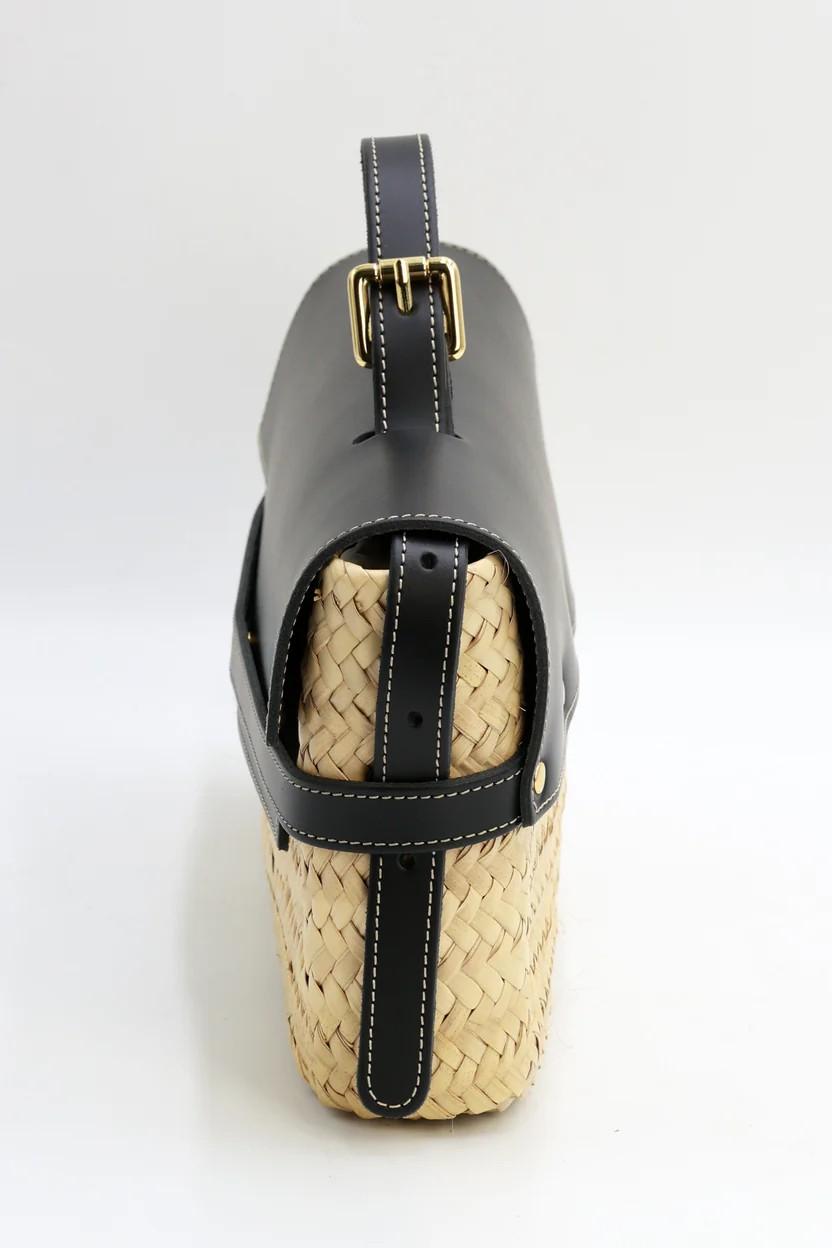 Elaborada a mano en nuestros talleres de Jerez de la Frontera, combina la ligereza de la palma trenzada con la solidez del cuero de primera calidad, trabajado con un pespunte preciso que define su estructura y resalta cada detalle.