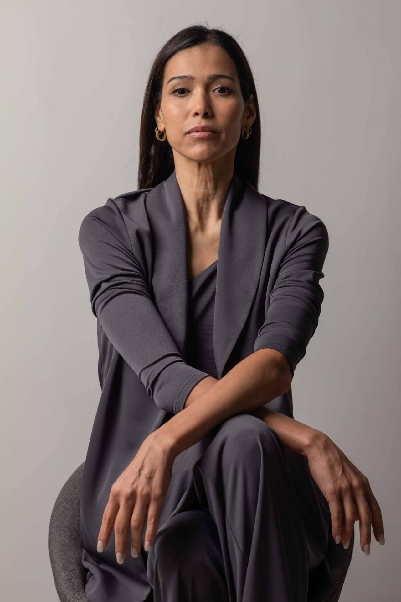 La blazer más versátil de tu primavera. Estilo desenfadado, muy fluída y de tacto muy agradable, con una largura nueva muy especial. Será tu segunda piel. Tiene el hombro asentado y el brazo entallado, que con su gran aporte de elasticidad la convierte en una pieza muy confortable. Combínala con nuestra colección de punto seda. Composición: 97% poliester y 3% elastán. Tejido vaporoso y fluido Colores disponibles: negro y plomo La modelo mide 1,76 cm y lleva talla S. Pecho: 80 cm Cintura: 63 cm Cadera: 96 cm